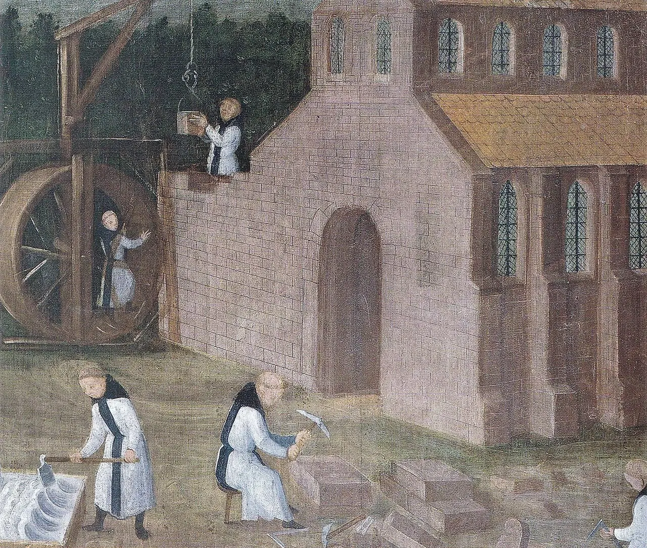 토목공사를 책임진 수도원 의식주 담당자의 지시에 따라 수사들은 평수도사에 의해 진척되고 있는 공사장 일들을 거들었습니다. 이들 평수도사들은 정식 수사들이 아닌 미사 전례를 돕는 이들이었습니다.