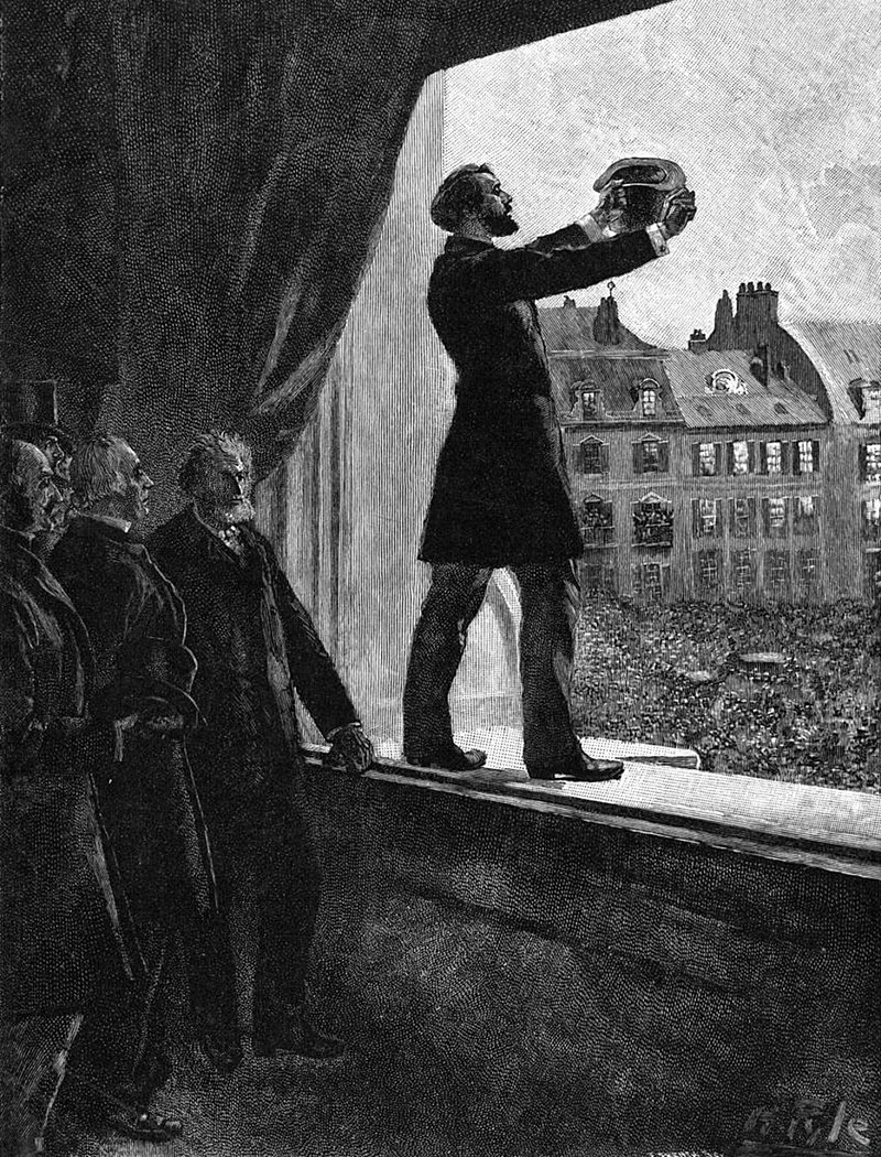 9월 2일 스당이 무너지면서 황제는 포로로 붙잡혀 감옥에 갇히는 신세가 되었다. 9월 4일이 되자 감베타는 공화정을 선포했다. 다음 날이 되자 프랑스 문 뒤에 웅크리고 숨어있던 빅토르 위고가 스스로 원한 19년간의 망명생활을 청산하고 의기양양하게 개선했다. 레옹의 시대가 도래한 것이다!