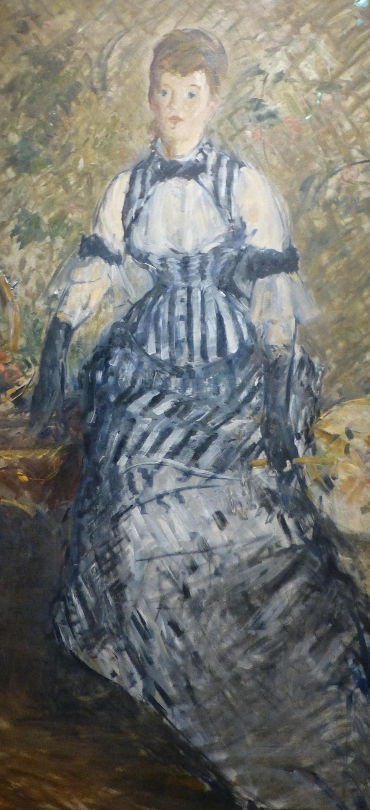 [2] 마네는 계속 인물화에 매달렸다. 맨 왼쪽의 그림은 ‘원조 라뛰유(Chez le Père Lathuille)’의 창업자 아들 부인인 「마르그리트 고티에 라뛰유(Marguerite Gauthier-Lathuille)」(1878)를 그린 인물화이고, 두 번째 그림은 「주름진 옷을 입은 여인(La Femme en robe à rayures)」(1877-1880)이란 제목이 붙은 인물화이며, 세 번째 그림은 엘렌 앙드레(Ellen André)의 모습을 담은 「젊은 여인의 초상(Tête de jeune femme)」(1878)이고, 마지막 작품인 맨 오른쪽에 있는 그림은 「꽁스탕탱 기(Constantin Guys)」(1879)를 그린 인물화다.