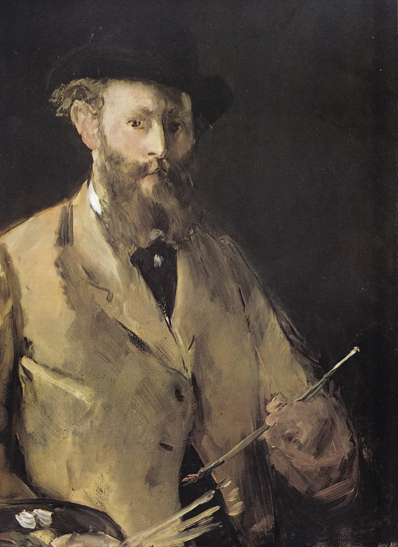 마네는 두 번째로 「반신 자화상」을 완성했다. 하지만 전혀 마음에 와닿는 구석이 없었다. 전문가다운 노련한 눈매에 요모조모 살피는 듯한 눈초리를 지닌 용모이기는 하지만, 병색이 완연히 짙을 뿐이다. 얼굴도 상당히 수척해졌으며, 어딘지 모르게 표정마저 어색해 보인다.