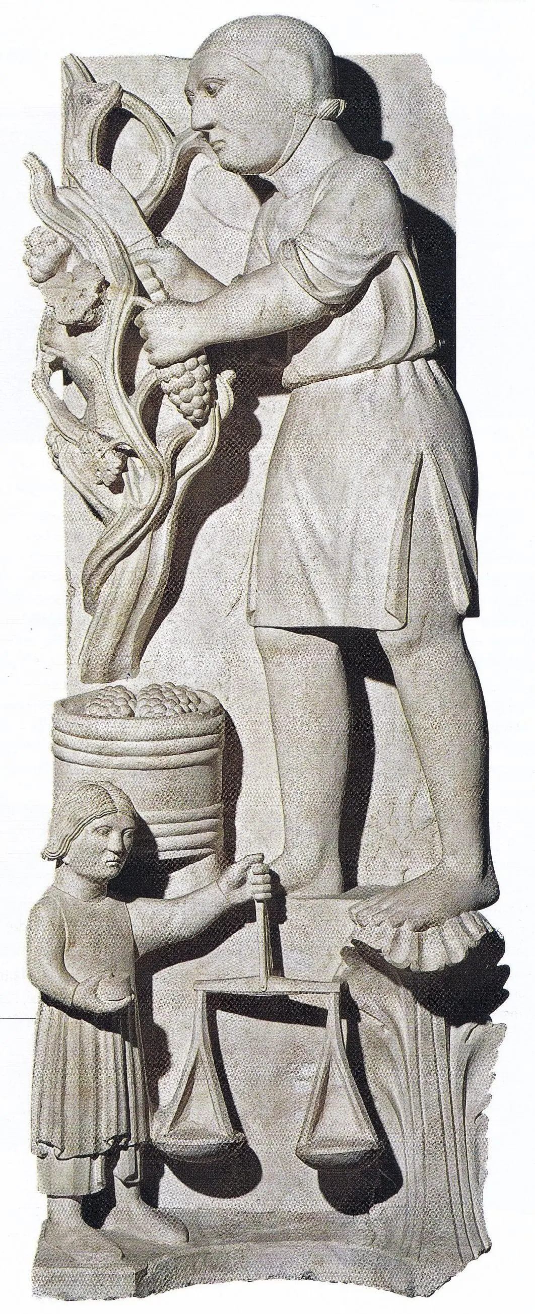 조각가이자 마스터였던 베네데토 안텔라미(Benedetto Antelami)는 9월을 포도를 수확하는 인물로 의인화했습니다. 조각상 밑을 살펴보면, 십이 황도대에 근거한 상징에 해당하는 저울을 들고 있는 또 한 명의 인물이 서있습니다. 현실에 바탕을 둔 그만의 표현 스타일은 앞으로 고딕의 시대를 예고하는 불멸의 걸작품을 방불케 합니다.