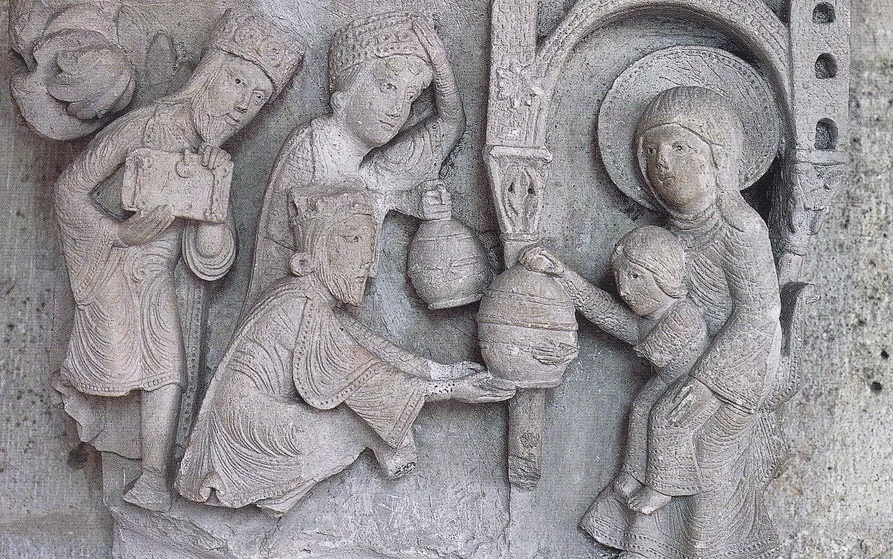 이 눈부시도록 정치한 아름다움을 자랑하는 기둥머리 장식들은 1125년에서 1145년 사이에 완성되었는데, 꽃 장식 모티프가 한쪽에 자리 잡은 구약과 신약성서에서 발췌한 장면들을 형상화한 것입니다.