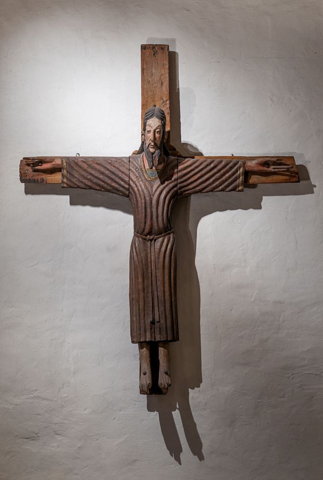 그 가운데 대다수를 차지하는 것이 십자가에 못 박힌 예수의 형상을 제작한 십자고상입니다. 제단 가까이 으뜸의 자리를 차지하는 십자고상에 관한 주제는 나무로 제작한 조각 장식에서 가장 많이 되풀이된 주제이기도 합니다.