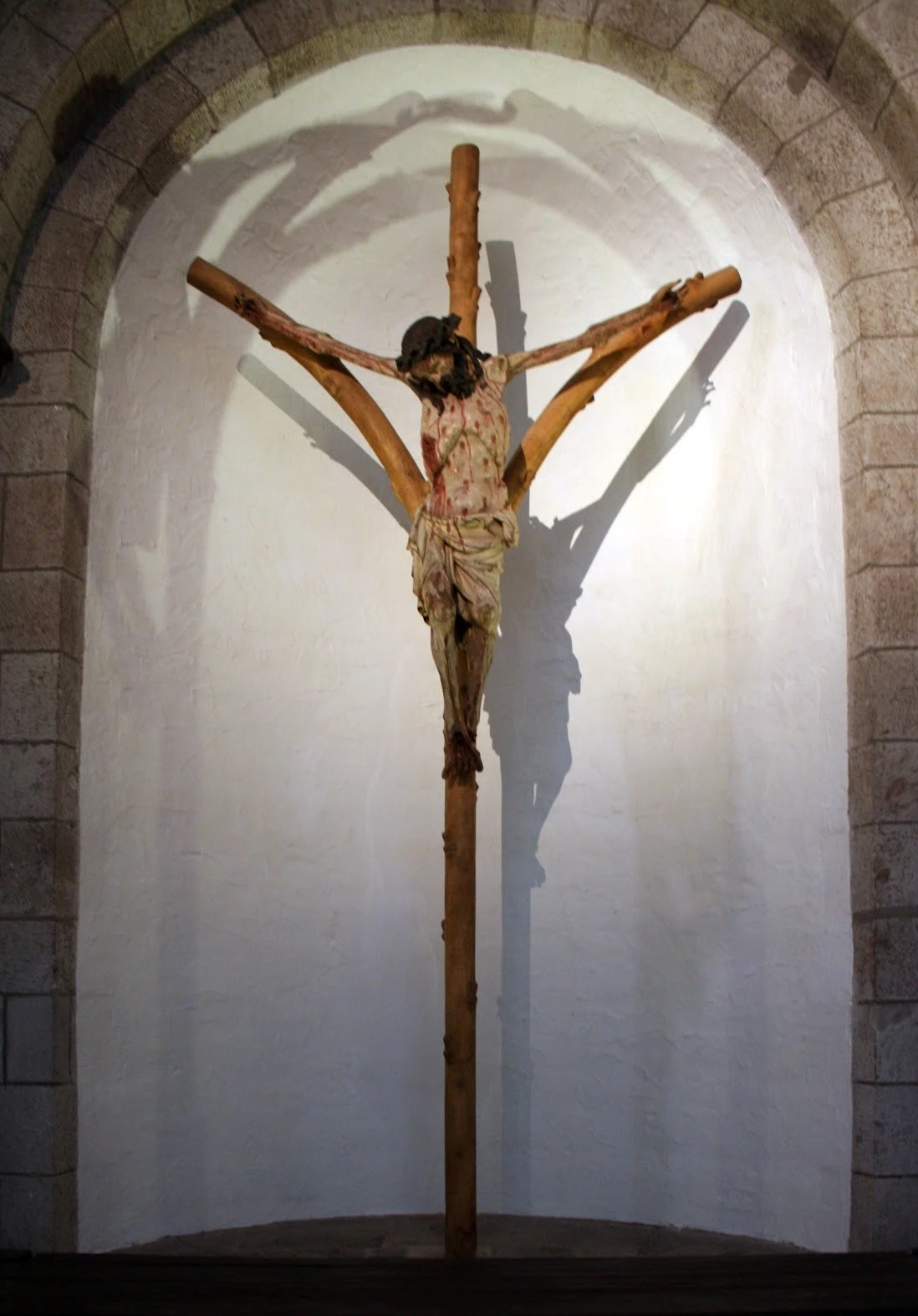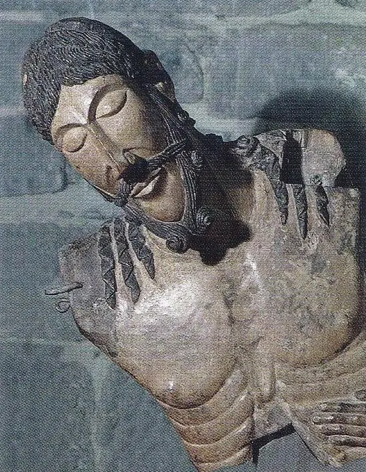 11세기와 12세기에 십자고상은 사형에 처해진 인간이 고통에 신음하면서 죽음에 이르는 모습을 형상화한 것과는 거리가 멀었던 셈입니다. 구세주는 항상 살아있는 형상이어야만 했습니다. 눈을 크게 뜬 채 고통과는 거리가 먼 존재이어야만 했으며, 어떠한 고통스러운 모습도 허용되지 않았습니다.