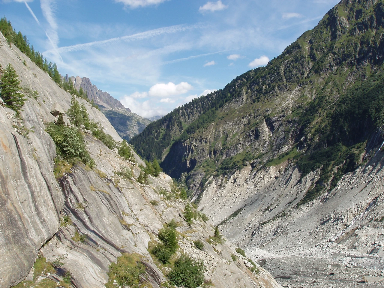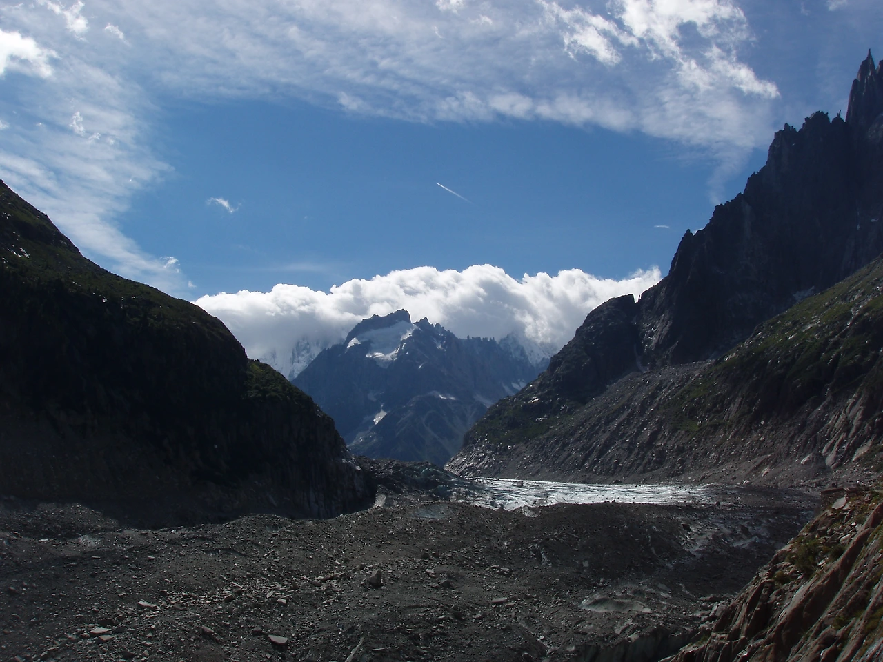 에귀 뒤 미디에 올라 몽블랑을 바라보던 기억이 되풀이될 때까지 샤모니에서 등산열차를 타고 알프스 협곡 몽탕베흐의 메흐 드 글라스에 오른 기억이 붉은빛 송어 살처럼 투명하기만 하다. 날씨가 푸근했기에 점심 식당 테라스에 핀 제라늄이 더 소담스러웠던 여름 한낮, 등산열차는 힘겹게 산자락 비탈을 기어올라 마침내 눈이 녹아 바다를 이룬 몽탕베흐에 닿는다.
