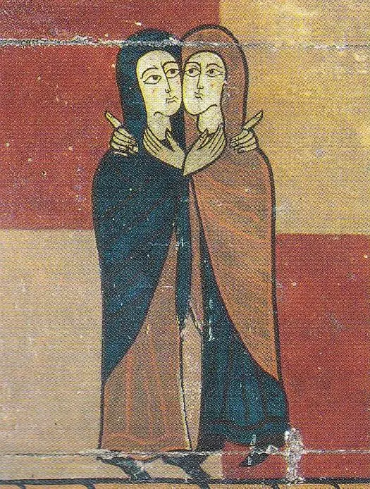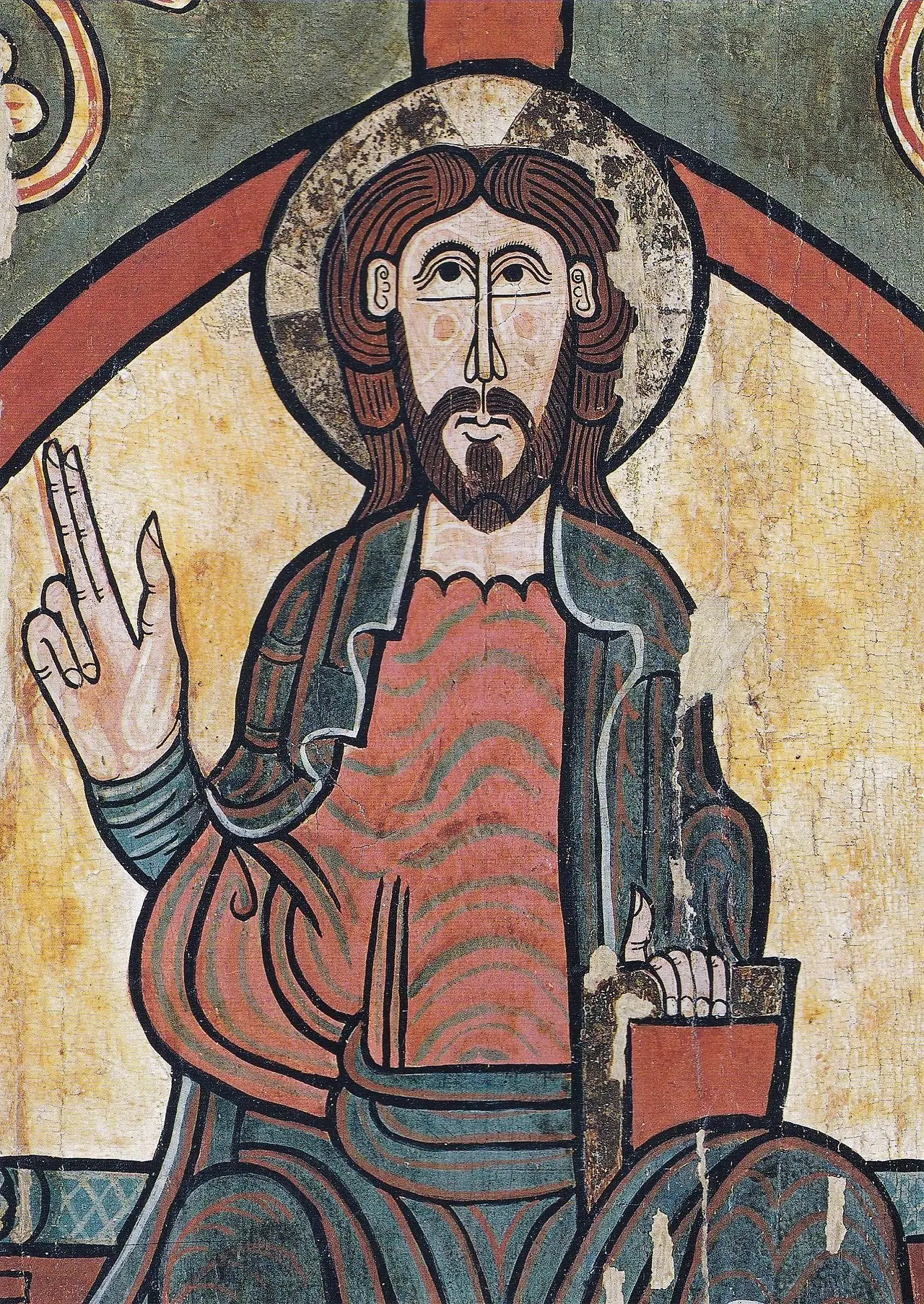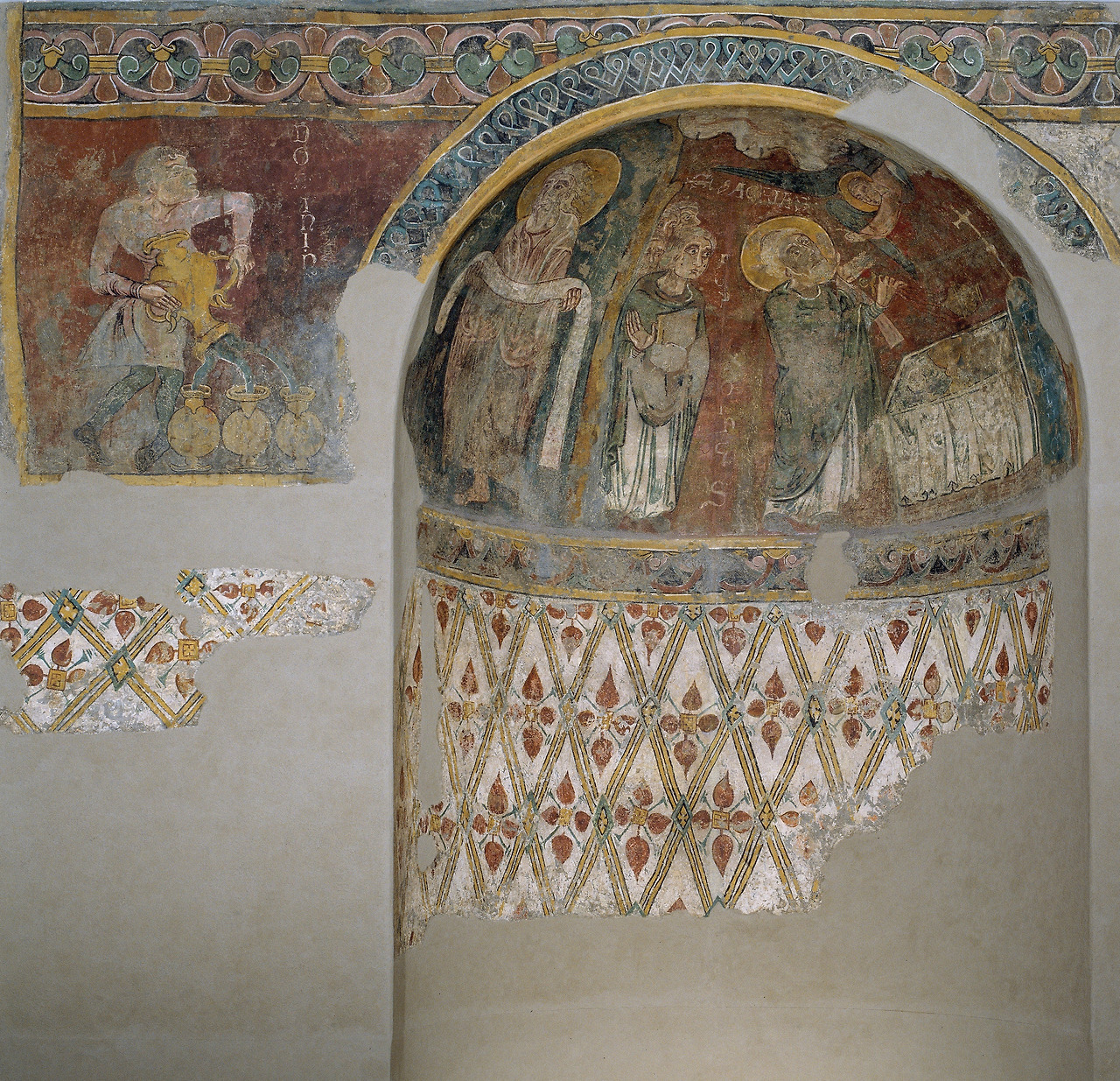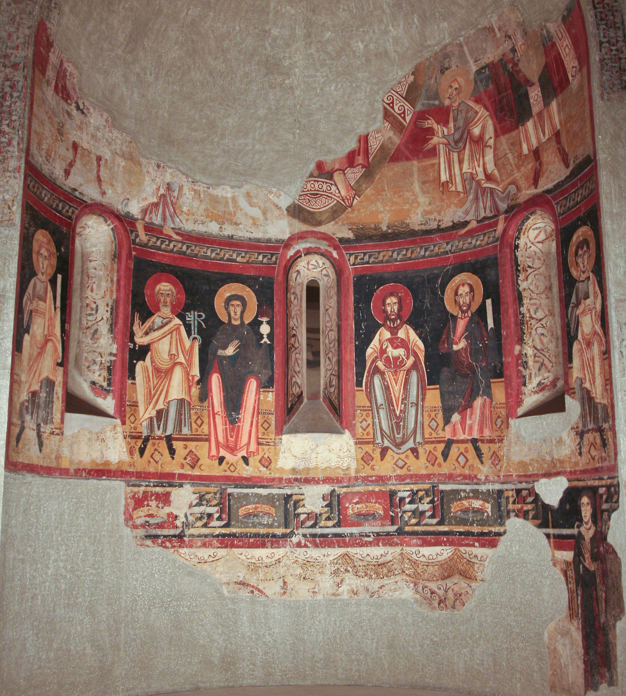 또 다른 하나의 흐름은 롬바르디아 예술을 통하여 영향을 받은 비잔틴 예술에 기반한 것입니다. 그렇다 해서 모사라베 예술이 기여한 바를 도외시할 수는 없습니다. 이러한 흐름을 읽을 수 있는 프레스코 화가 산 페레 델라 세우 두르젤의 후진 장식입니다.