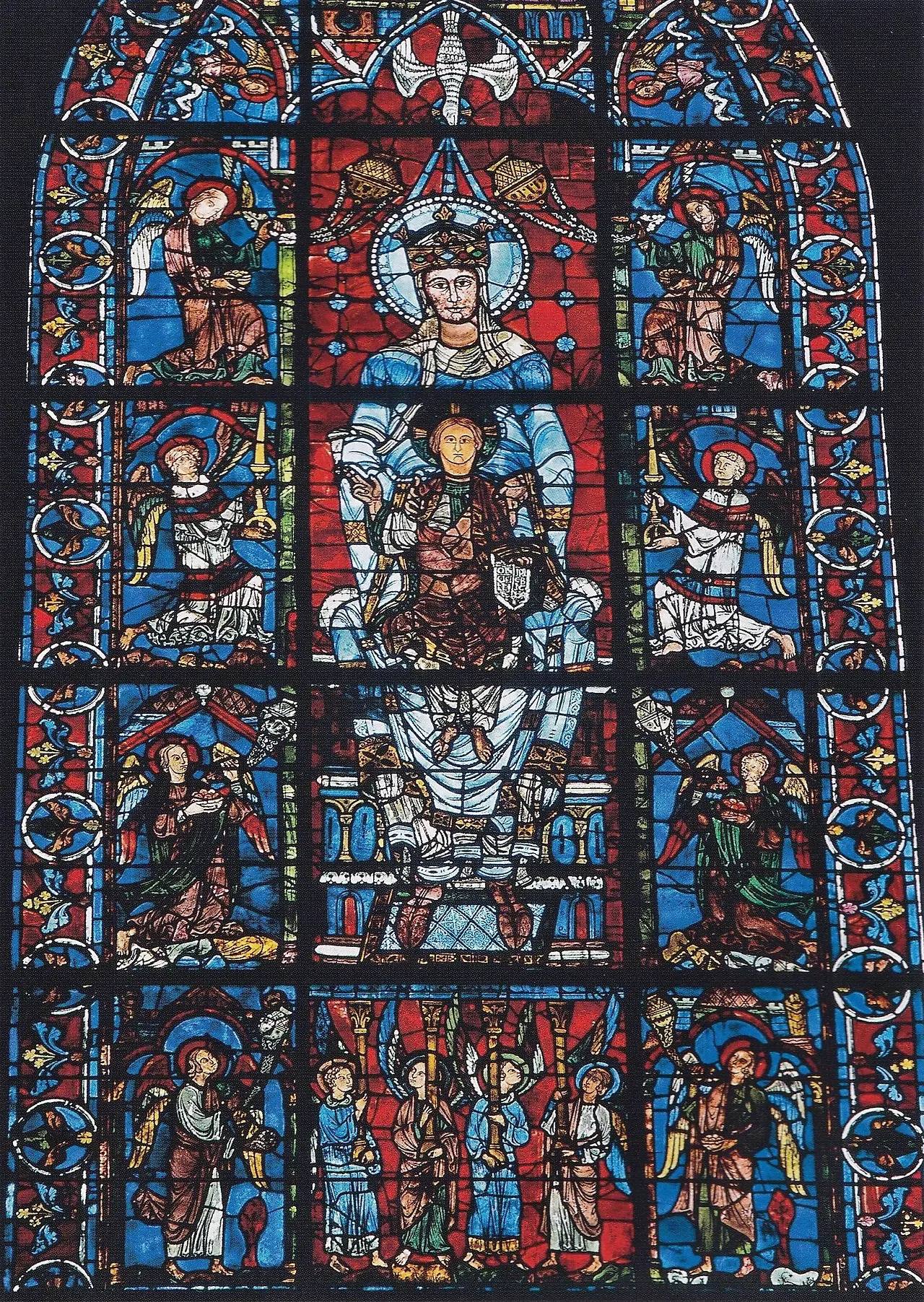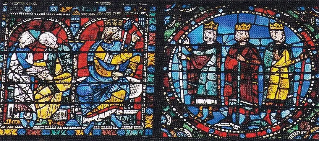 샤르트르 대성당과 생 드니 수도원은 로마네스크 양식을 쇄신한 고딕 성당에 성화를 담은 색유리창을 처음으로 설치한 곳입니다. 이들 성당들은 시토회의 규율에 따르자면 유리창에는 그 어떤 색도 입혀서는 안 되며, 또한 어떠한 성서적 삽화도 담아서는 안 된다는 규정을 거부한 채, 성서에 등장하는 장면들을 극화한 색유리창을 제작해 설치한 경우라 할 수 있습니다.