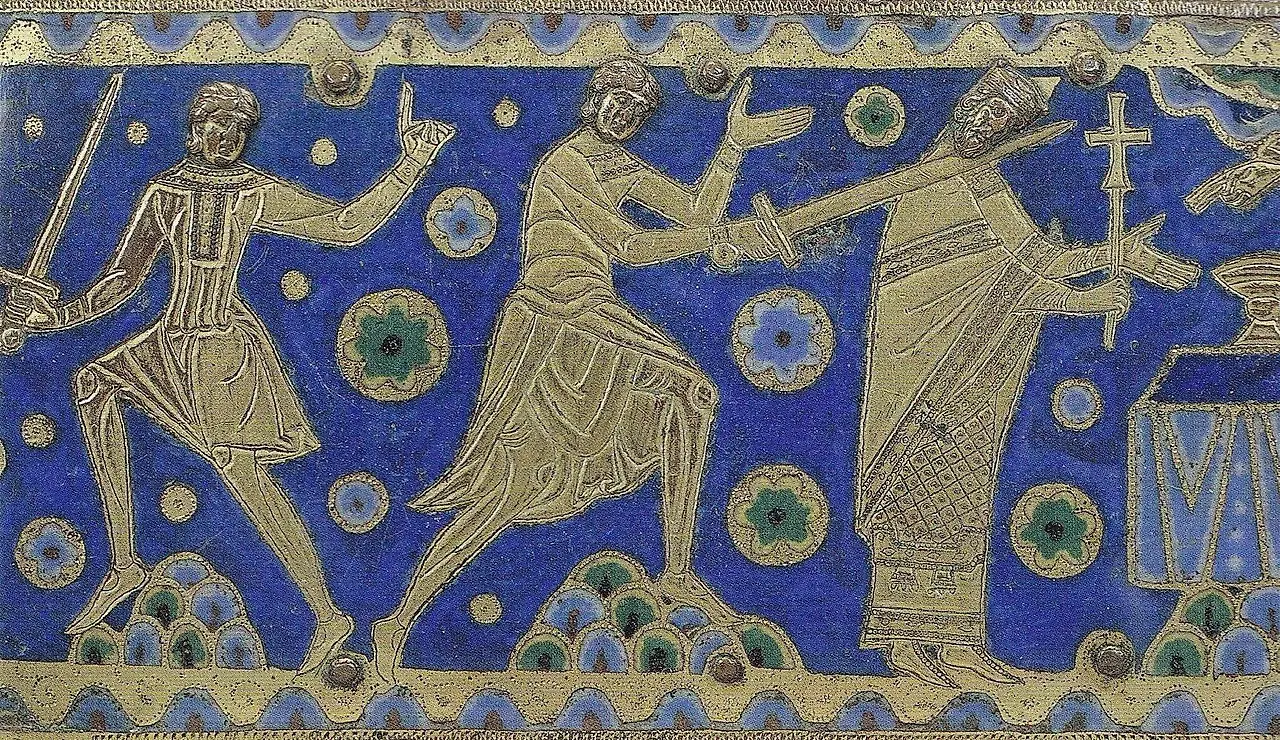 캔터베리 대주교였던 토마스 베게트는 주교 서임권을 둘러싸고 헨리 2세 플랑타쥬네 국왕과 갈등을 빚다 국왕의 지시에 따른 암살자들에 의해 1170년에 살해당했죠. 대주교는 1173년에 성인으로 축성되었습니다.