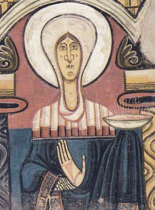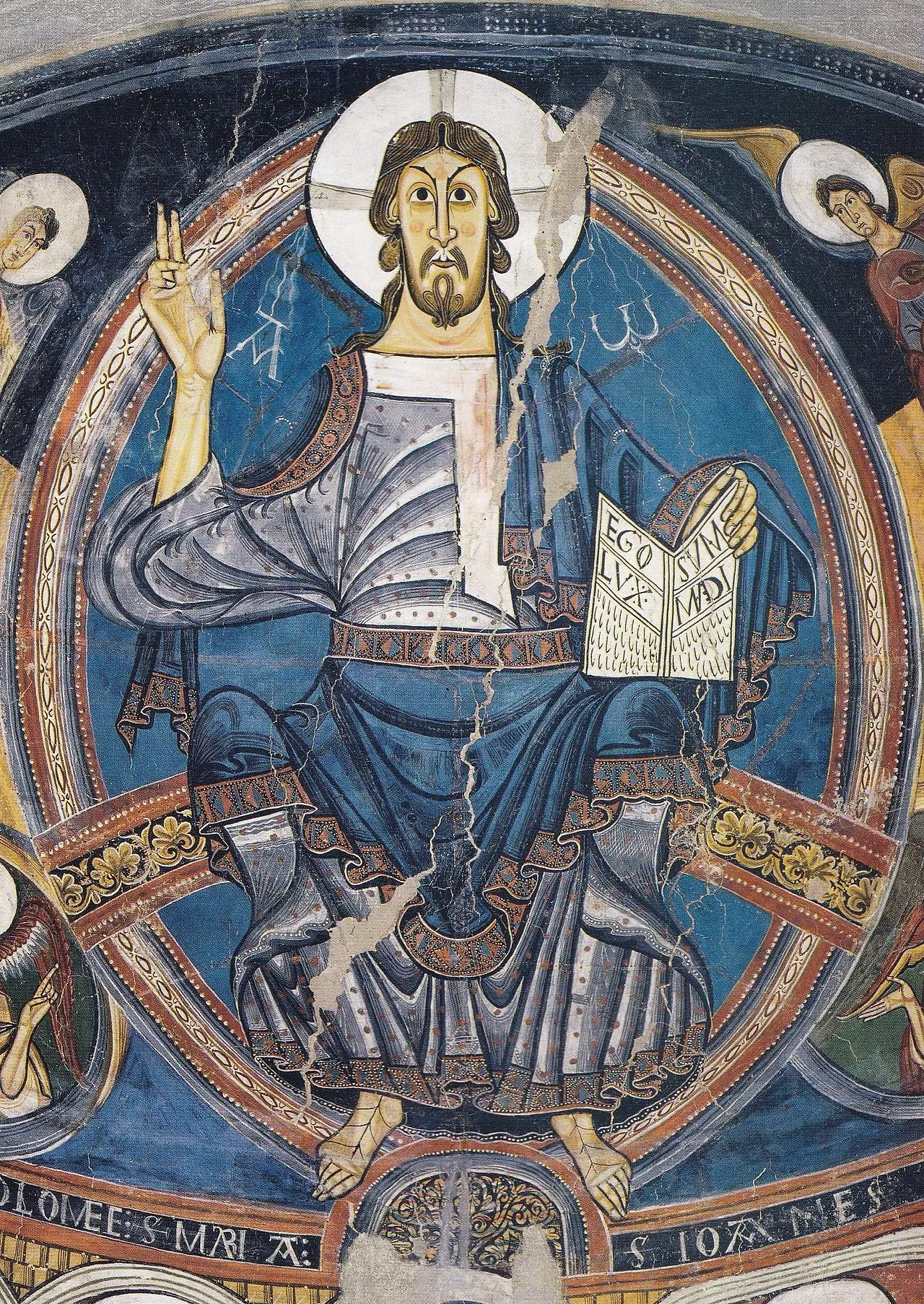이러한 주제를 가장 탁월하게 표현한 성화가 카탈루냐지방에 위치한 타울(Taüll)의 산클리멘트 교회 후진에 그려져 있습니다. 간혹 교회 후진 안쪽 내밀한 곳에 그려진 성화의 아랫부분에서 조심스럽게 마리아가 아들의 영광스러운 현현(顯現)에 동참하기도 합니다. 타울에 소재한 또 다른 성당인 산타 마리아 벽화에서 보듯 예수 그리스도로부터 축성받은 성모 마리아가 등장하기도 하죠.
