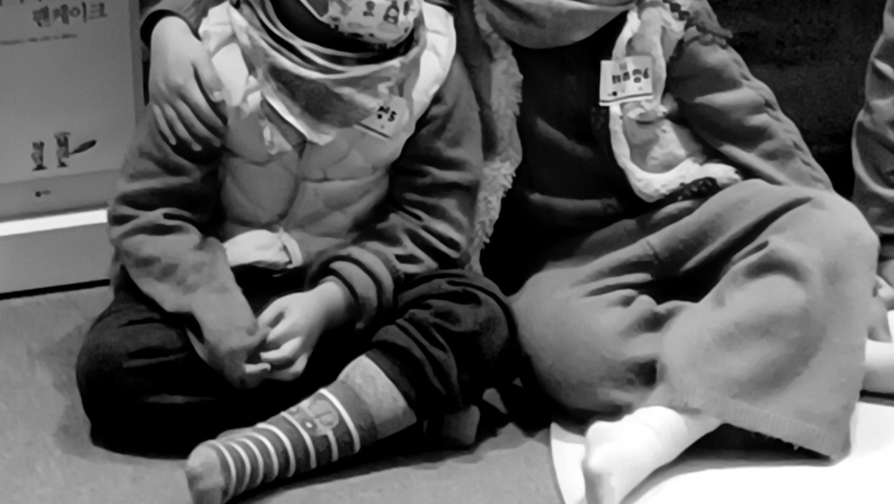 준비가 된 듯한 하성이는 아빠하고 같이 들어가겠다고 했다. 조용히 들어가 누나 옆에 앉혔다. 하임이는 책 선생님이 읽어주는 동화책에 시선을 고정한 채, 늦게 들어와 자기 옆에 앉은 동생의 어깨에 손을 올리고 토닥여주었다. 그 뒤로도 책을 보다가 이따금씩 하성이 어깨에 자그마한 손을 얹어서 토닥여주는 걸 잊지 않았다. 유리창 너머로 자기를 보고 있는 아빠에게 괜찮다는 눈길을 주는 것도 함께였다. 하임이가 품었던 그 마음은 나를 위로하고 안정시킬 만큼이나 컸다.