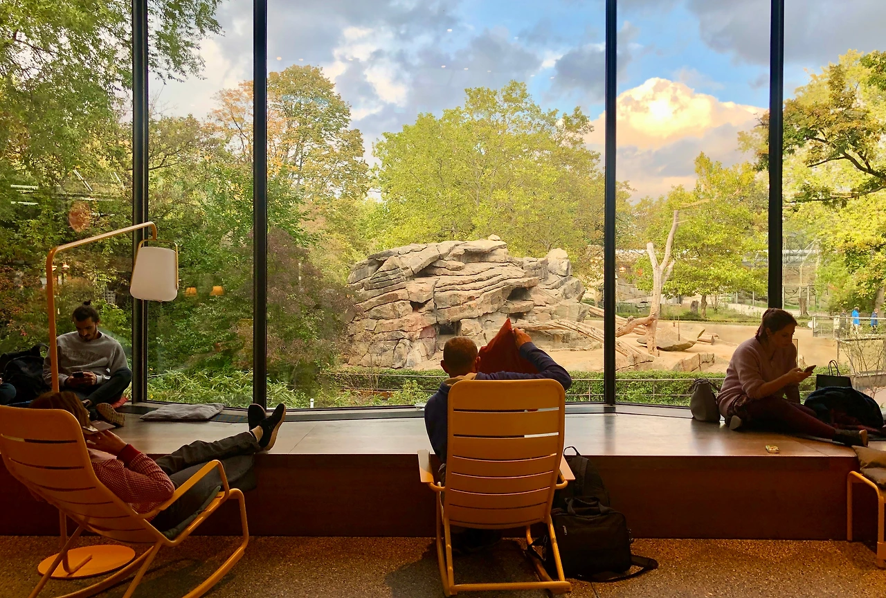 비키니 베를린은 외관은 별 대단한 게 없었지만 실내에 들어서니 굉장히 예술적인 건축물이었다. 유리를 통해 동물원이 보이고 그곳에 안락의자를 배치해놓는 배려들이 정말 놀라웠다. 이런 게 여유구나. 건물 자체가 예술이구나 라는 생각이 들었다.