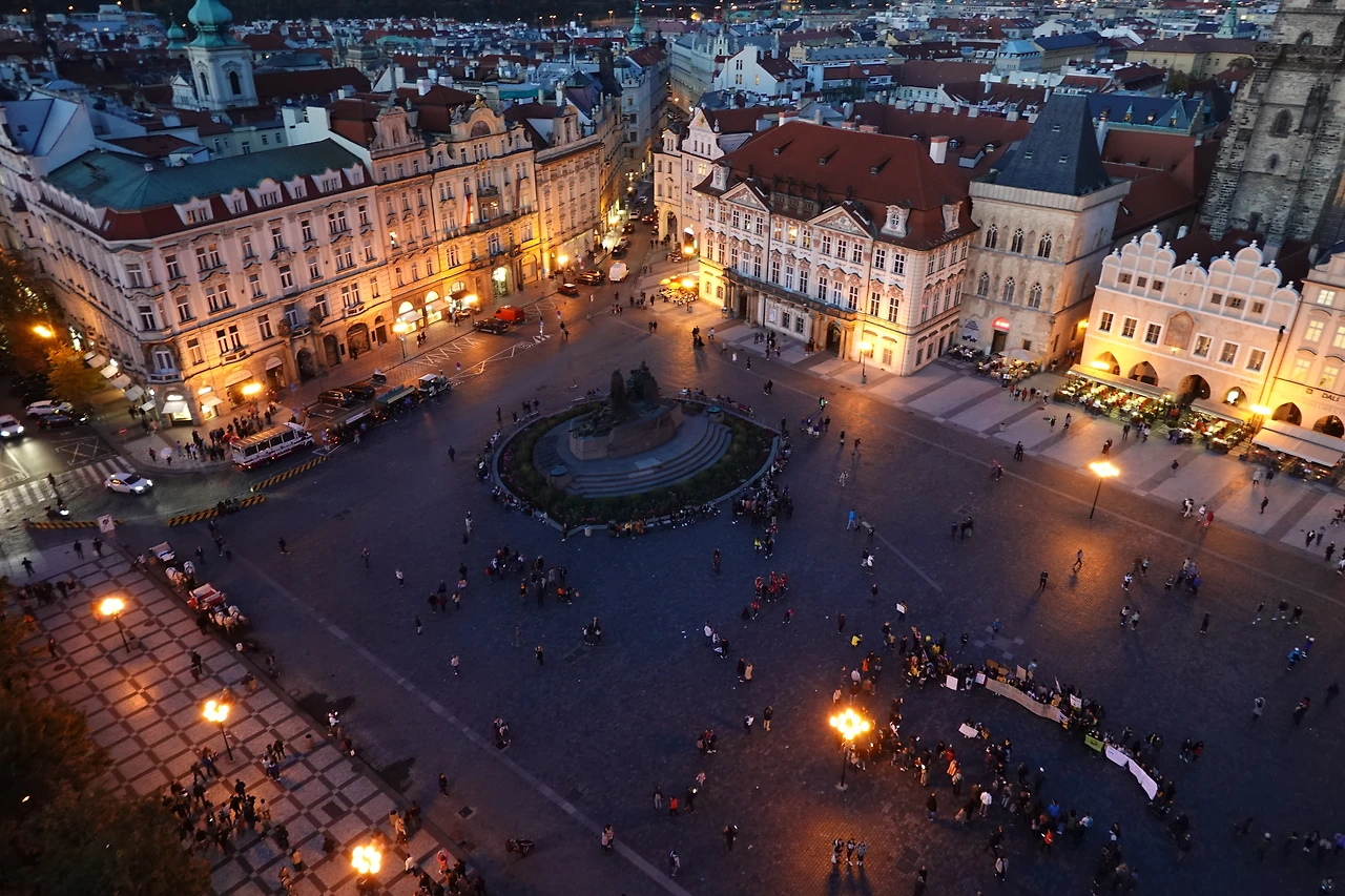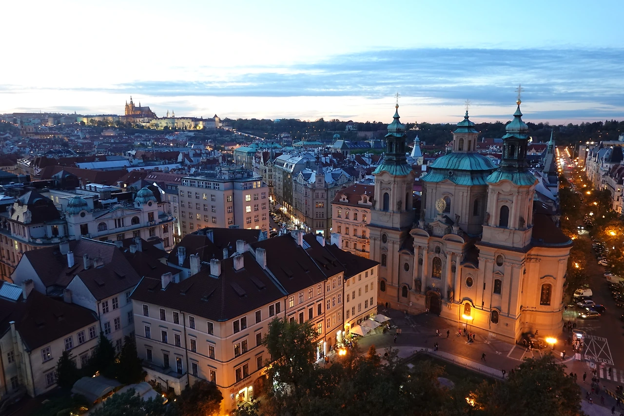 다음 코스로는 해 질 녘 천문시계탑 위에서 내려다보는 야경을 강추했던 가이드의 말이 생각나 중앙광장으로 다시 이동했다. 역시 천문시계탑의 황혼 풍경은 진정 최고였다. 날씨도 잘 받쳐줬기에 더욱 아름다운 풍광을 감상할 수 있었다. 끊임없이 셔터를 누르고 영상을 찍는 사이 해가 저물고 있었다.