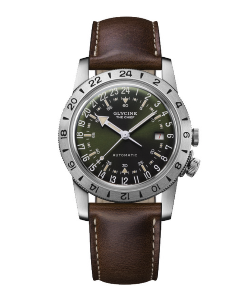 1953년에 제작되어 세계 최초의 GMT 시계로 알려져 있는 글라이신의 에어맨은 어떨까?