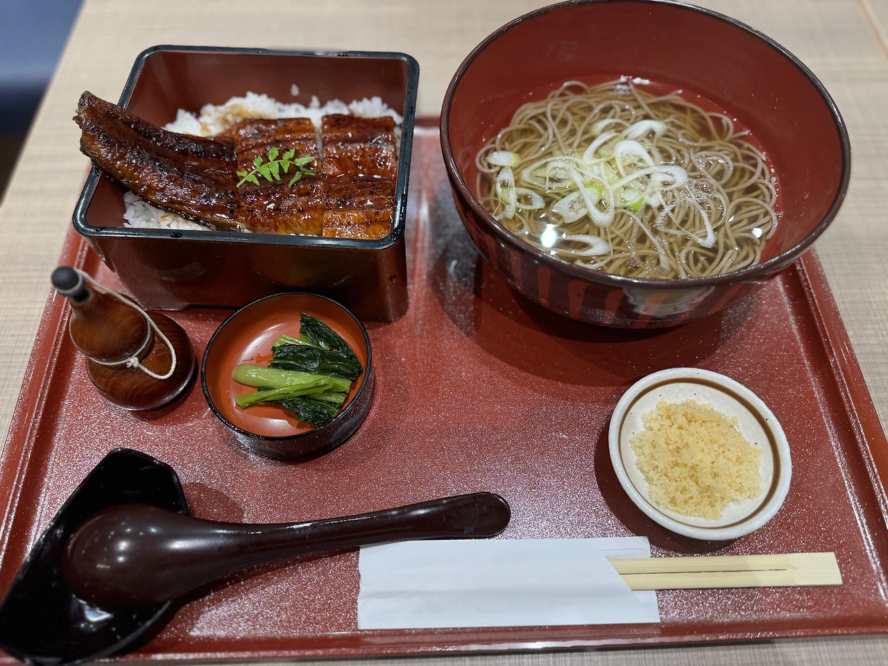 한큐 호텔에서 리무진 버스를 타고 공항에 도착하니 오후 4시였다. 서울에 도착하면 밤 9시니 이른 저녁을 먹어야 했다. 예전에 긴자에서 맛있게 먹었던 장어덮밥이 생각나서 덮밥과 소바를 시켜 먹었는데 공항음식 치고 맛이 꽤 괜찮아서 다행이었다.