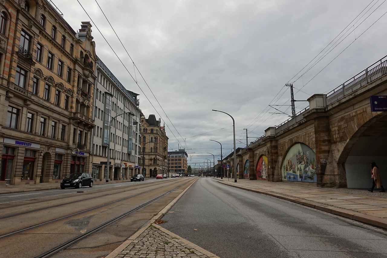 지도를 보니 숙소까지 2.4km에 불과했다. 애매한 거리라 트램 대신 킥보드를 이용하기로 했다. 메인스트리트를 따라 달리는데, 양쪽으로 상점이 늘어서 끝이 보이지 않았다. 신나게 달려 중앙 교차로에 이르러 숙소 쪽으로 방향을 틀었다. 달리다 보니 옆으로 트램이 지나갔다. 드레스덴의 밤거리는 어두워서 킥보드를 타기엔 위험할 수 있겠다는 생각이 들었다. 인도는 돌길이라 킥보드를 타기에는 덜컥거림이 심했다. 결국 트램이 없는 골목 안쪽 길을 택했다. 차도 사람도 없는 조용한 길이었는데, 어둡고 양옆에 가득한 그래피티가 주는 분위기가 다소 으스스했다. 그럼에도 킥보드를 타기에는 최적이었기에 빠르게 달려 무사히 숙소에 도착할 수 있었다.