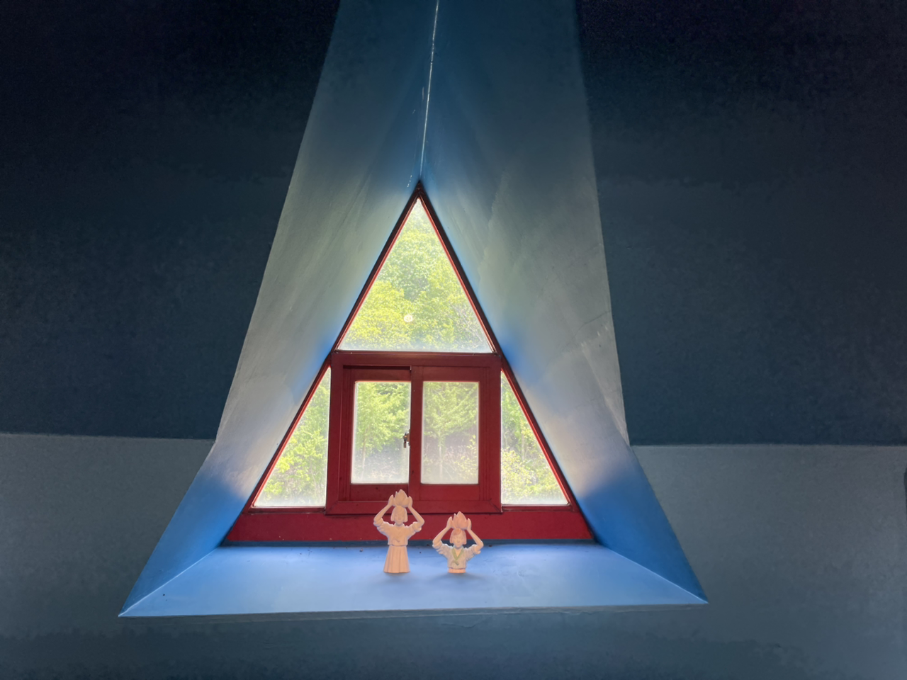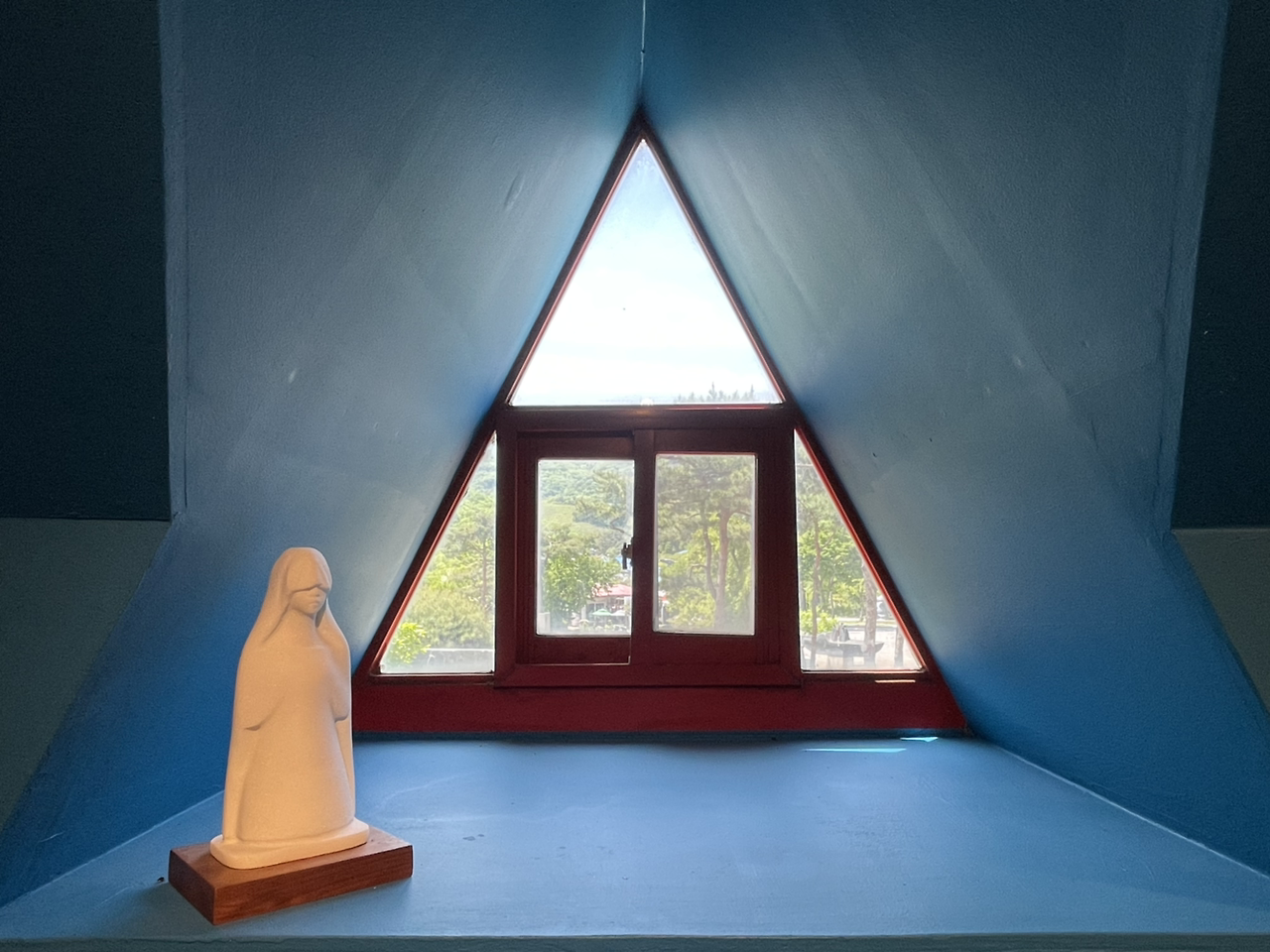 파란색 배경과 세모 모양의 창의 조화에 나의 눈길이 한참을 머물렀다.