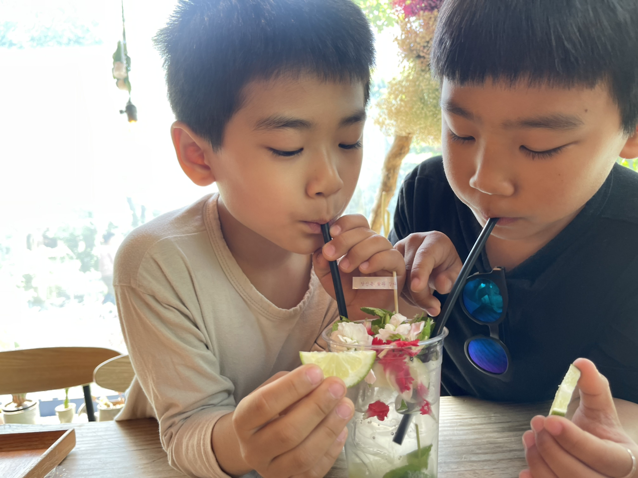아이들도 눈으로만 보던 꽃을 입으로 맛본다.