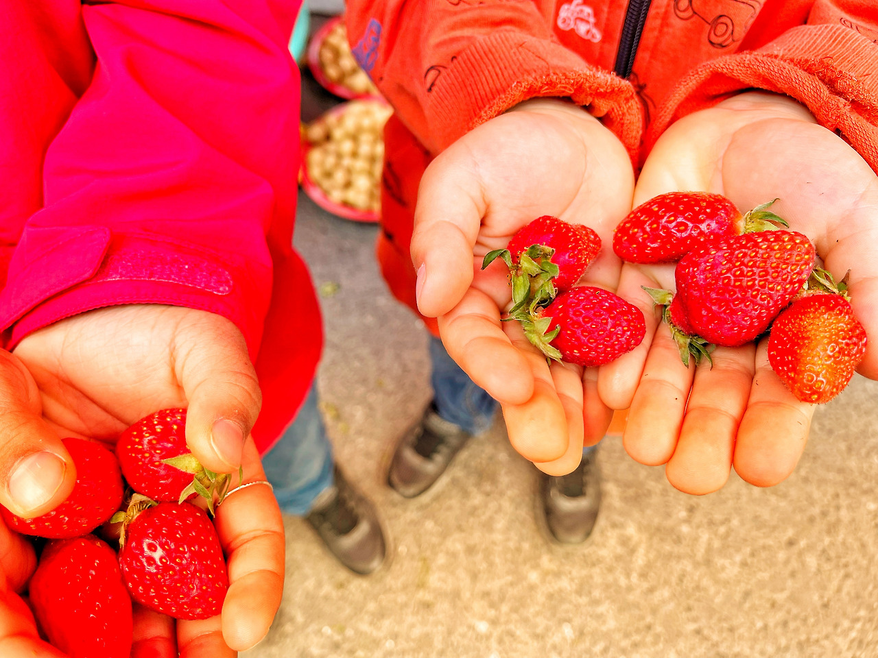 빨간 다라이에 담긴 딸기는 정말 달고 맛있죠.