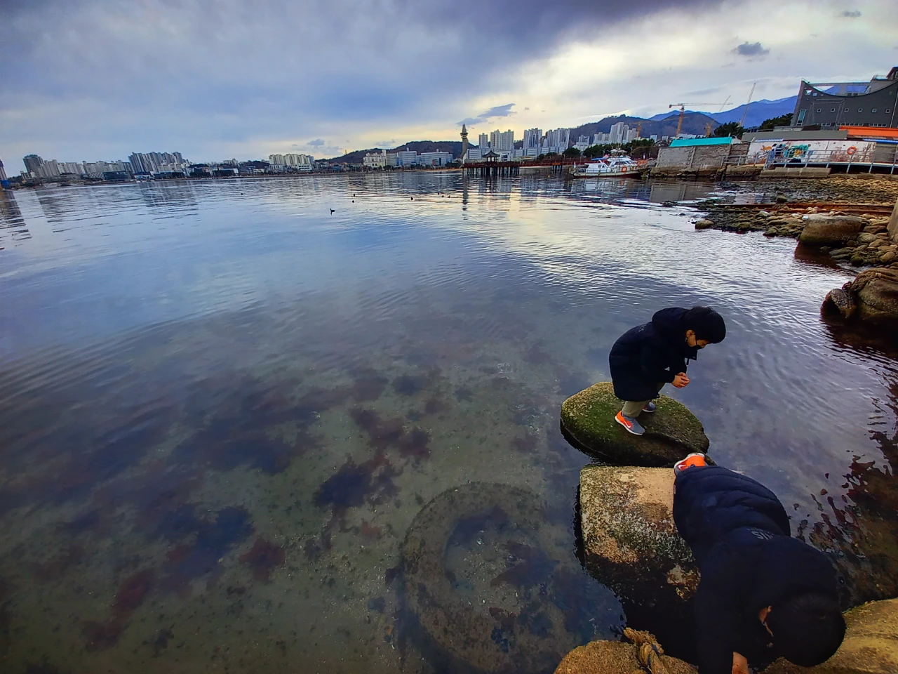 아이들은 돌에 붙은 홍합을 뗀다고 호숫물에 옷을 다 적셨다.