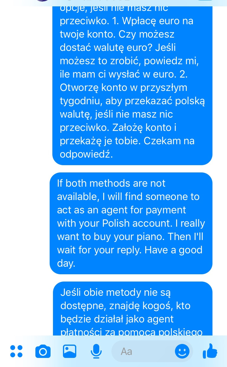 판매자에게 내 주거래 은행에서 폴란드 계좌로 송금이 불가능하다는 사실을 알리고 세가지 제안을 했다.