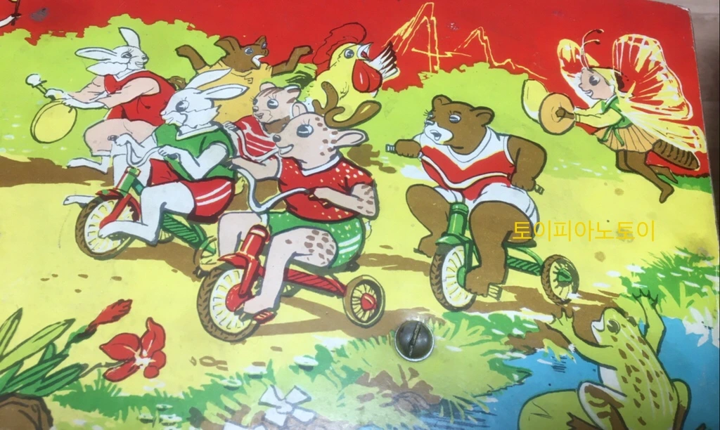 내가 처음 구입한 백두산 토이 피아노는 귀여운 동물들이 노동을 하고 있는 일러스트가 인쇄된 악기였다. 그러다가 작년에 내가 북한 토이피아노를 접하게 해준 폴란드의 토이피아니스트를 만나고 난 뒤 같은 브랜드의 다른 일러스트가 그려진 피아노를 알게 되었다. 나는 다시 중고시장을 주시했고 얼마전 원하던 악기를 손에 넣었다.