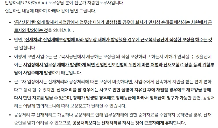 일반 회사원의 산재와 공상 처리 차이점