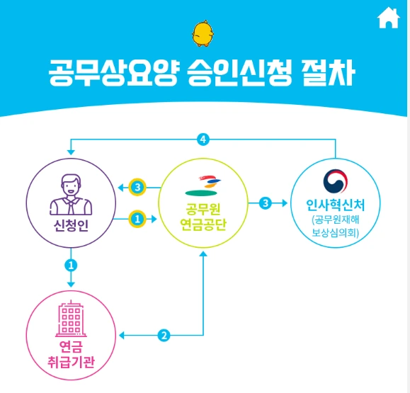 하지만 공무원은 같은 공상처리라는 말을 쓰지만 엄밀히 따지면 회사원과는 다르다. 이 개념을 정리하는 데만도 1시간 이상 인터넷을 뒤지고 여러 블로그에 올려진 글을 집중해서 읽어야 했다. 공무원의 공상 처리는 풀어쓰자면 공무상 재해(부상 또는 질병)로 인한 요양 승인 신청을 했다는 뜻이다.공무원은 회사원처럼 산재와 공상 둘 중 한 가지를 택하는 것이 아니라 공무상 요양 승인 신청 외에는 지원받을 방법이 없다.