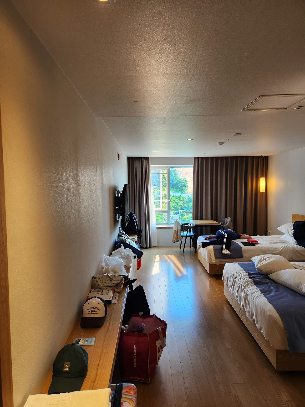 숙소 광고에 따르면 마운틴 뷰지만 2박에 106,000원입니다. 가성비 숙소로 추천할 만합니다. 올해 2월 오사카에서 4일간 머문 숙소와 비슷했습니다. 또한 여수 야경을 볼 수 있는 크루즈가 50% 할인이라 세 명이 33,000원에 80분 간 배를 탈 예정이었습니다.