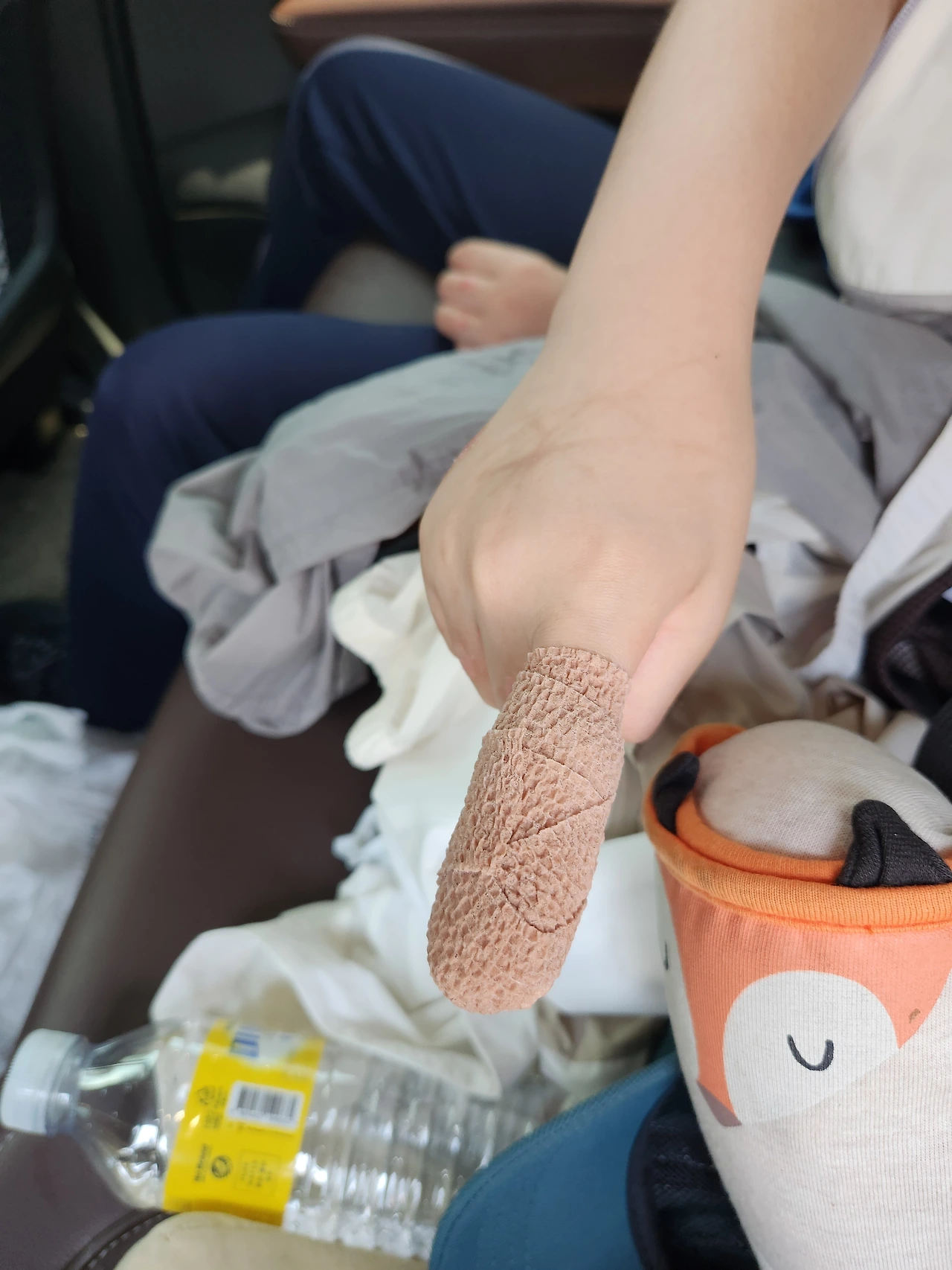 조금 어이가 없었지만 그 말도 일리가 있다 여기며 외과로 올라갔습니다. 외과 선생님은 환부를 둘러싼 코반을 벗기고 아이 손가락 움직임과 감각이 느껴지는지 여부를 체크하시더니 이 정도는 약 먹을 필요도 없고 소독 잘하고 후시딘 바르면 금방 낫는다고 말씀하셨습니다. 혹시 염증이 심해졌을까 걱정했는데 전문가의 확답을 들으니 아이도, 나도 마음이 차분하게 가라앉았습니다.