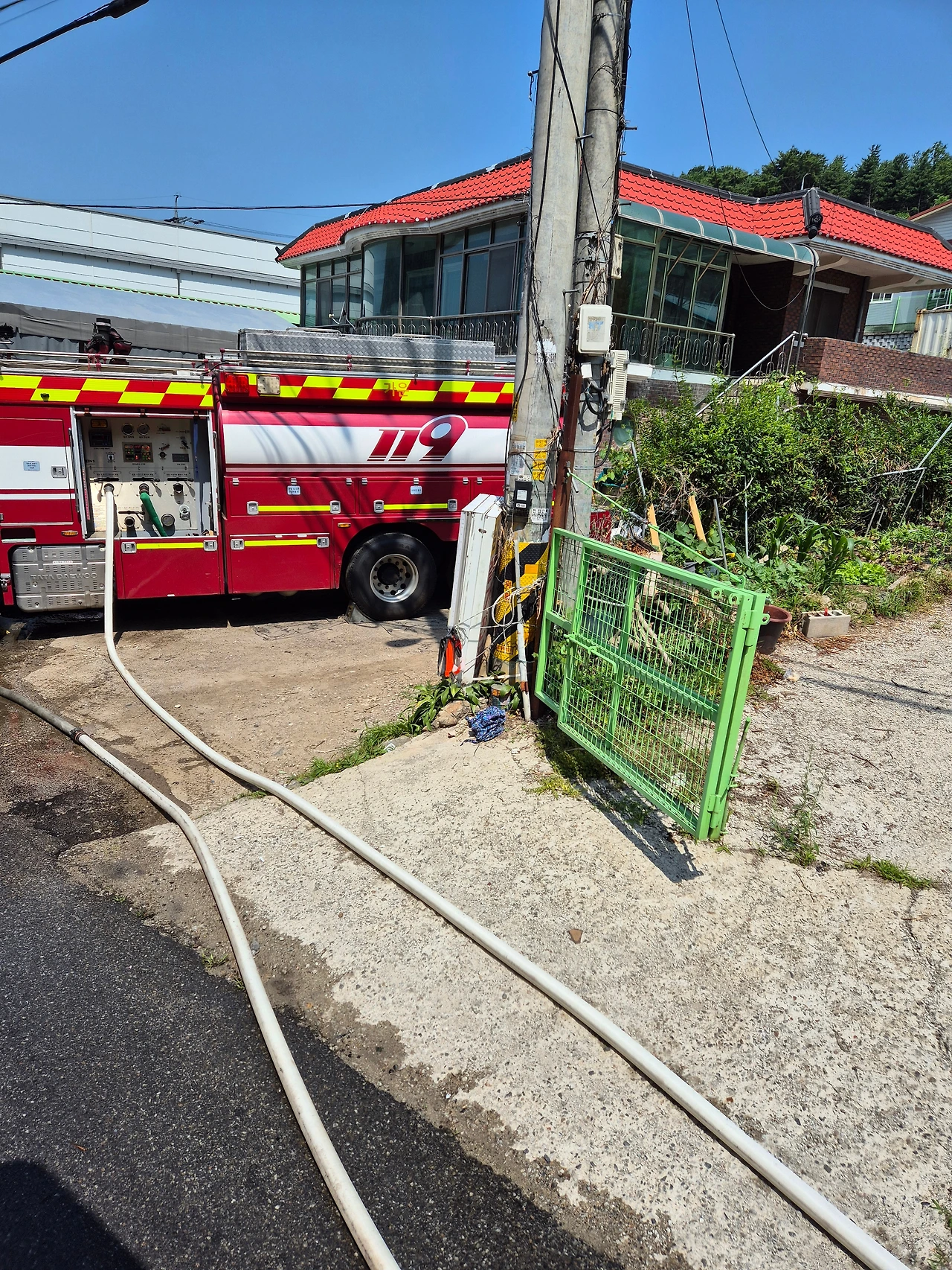 화재현장까지 진입로가 좁았습니다. 이럴 때 신경이 곤두섭니다. 사고 나면 안 되니까요. 전 물탱크차 운전원이었습니다.