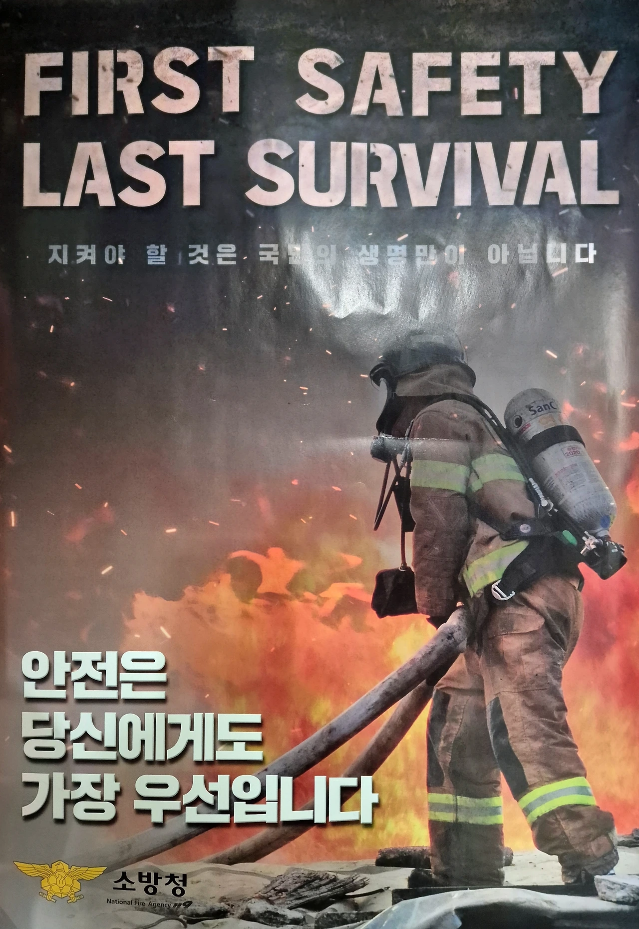 어떻게 다른 점을 잘 찾아보셨나요? 15년 차 현직 소방관으로서 위 포스터의 다른 점에 대해 써봅니다. 우리는 밑바탕에 희생이 당연한 걸로 전제되어 있습니다. 소방관이라는 말속에는 남을 위해 자신까지도 희생한다는 뜻이 밑에 쫙 깔려있습니다(제가 느끼기로는 그렇습니다). 2020년 이후 해마다 몇 명씩 순직하는 소방관이 생겼습니다. 그러자 소방청에서 국민의 생명만 챙기지 말고 소방관인 너희 자신의 목숨도 잘 챙겨라는 뜻에서 부랴부랴 위와 같은 포스터를 만들어 최하급기관인 119 안전센터에까지 뿌리지 않았나 생각합니다.