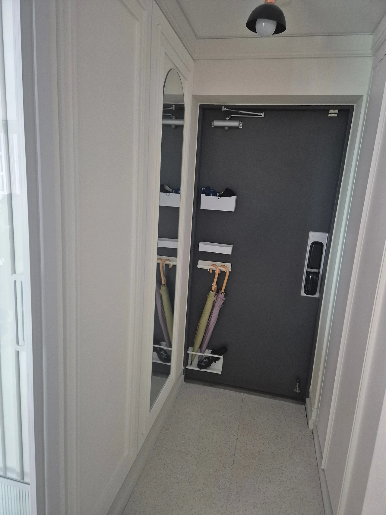 그래도 내 집 사진 한 장 올리겠다는 제 주장에 아내가 못 이긴 척 한 장 찍게 허락해 줍니다. 중문은 제목 배경으로, 아래는 현관 사진입니다.