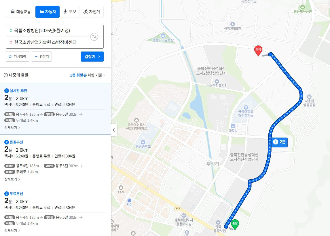 병원 위치는 충북 음성군 맹동면이었습니다. 운전하며 가는 길이 익숙해서 언제 이 길을 왔었나 생각했더니 소방산업기술원 소방장비센터가 병원 근처에 있었습니다. 5년 전, 그곳에서 1주일간 소방사다리차 교육을 받았고 소방사다리차 자격시험을 치렀던 곳이었습니다.
