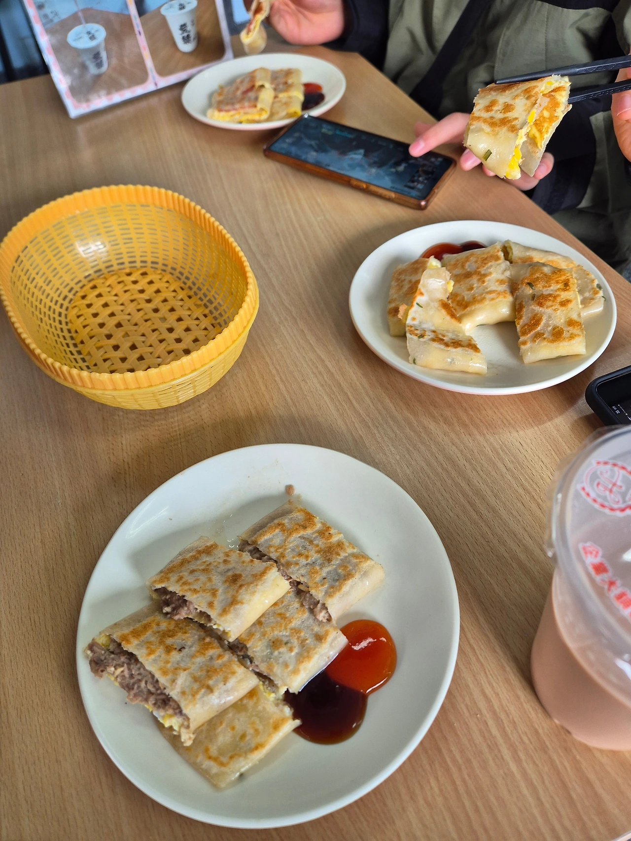 딴삥(대만식 팬케이크) 3개, 밀크티 2개, 샌드위치 1개를 시켰습니다. 우리가 주문하고 음식이 나오길 기다린 사이 사람들이 대여섯 명 줄을 서서 기다리고 있었습니다. 대만 관광객들이 추천하는 딴삥, 입에서 사르르 녹았습니다. 아내와 아이들도 모두 만족하는 아침식사였습니다.