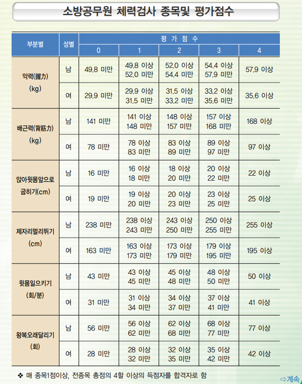 그러다 소방관 시험을 준비하며 체대입시학원으로 향했습니다. 당시 체력 종목으로는 제자리멀리뛰기(238cm 이상), 악력(49.9 이상), 배근력(141 이상), 좌전굴(16cm 이상), 윗몸일으키기(43개 이상), 20m 왕복 오래 달리기(56회 이상, 2002 월드컵 때 히딩크 감독이 국가대표 선수들 체력 측정할 때 사용했다고 함)이 1점이었습니다. 체력 시험에서 한 과목이라도 1점을 얻지 못하면 바로 탈락이었습니다. 제자리멀리뛰기에서 전체 응시자의 1/3 이상이 떨어졌습니다. 저 역시 그중의 한 명이었습니다. 그래서 저와 같은 사람들이 체대입시학원을 알아보기 시작하는 수요가 생겨났고 체대 입학을 희망하는 고등학생을 지도하는 입시학원에서는 학생들이 오지 않는 오전 시간에 소방관 준비반을 부업 정도로 진행했었습니다. 중랑구 쪽에 있던 체대학원이었는데 당시 같이 운동하던 사람들의 90% 정도는 지금 모두 현직으로 근무하고 있습니다. 월수금 아침 10시부터 12시까지 힘들게 운동했습니다. 달리기, 스쿼트, 철봉 매달리기, 팔운동, 점프 훈련 등 여러 가지를 했습니다. 그렇게 부족한 기초체력을 키워 2010년 소방관 시험에서는 체력 만점을 받을 수 있는 계기가 되었습니다(물론 제 힘으로 할 수 없는 일이었습니다. 모두 하나님의 은혜임을 고백합니다).