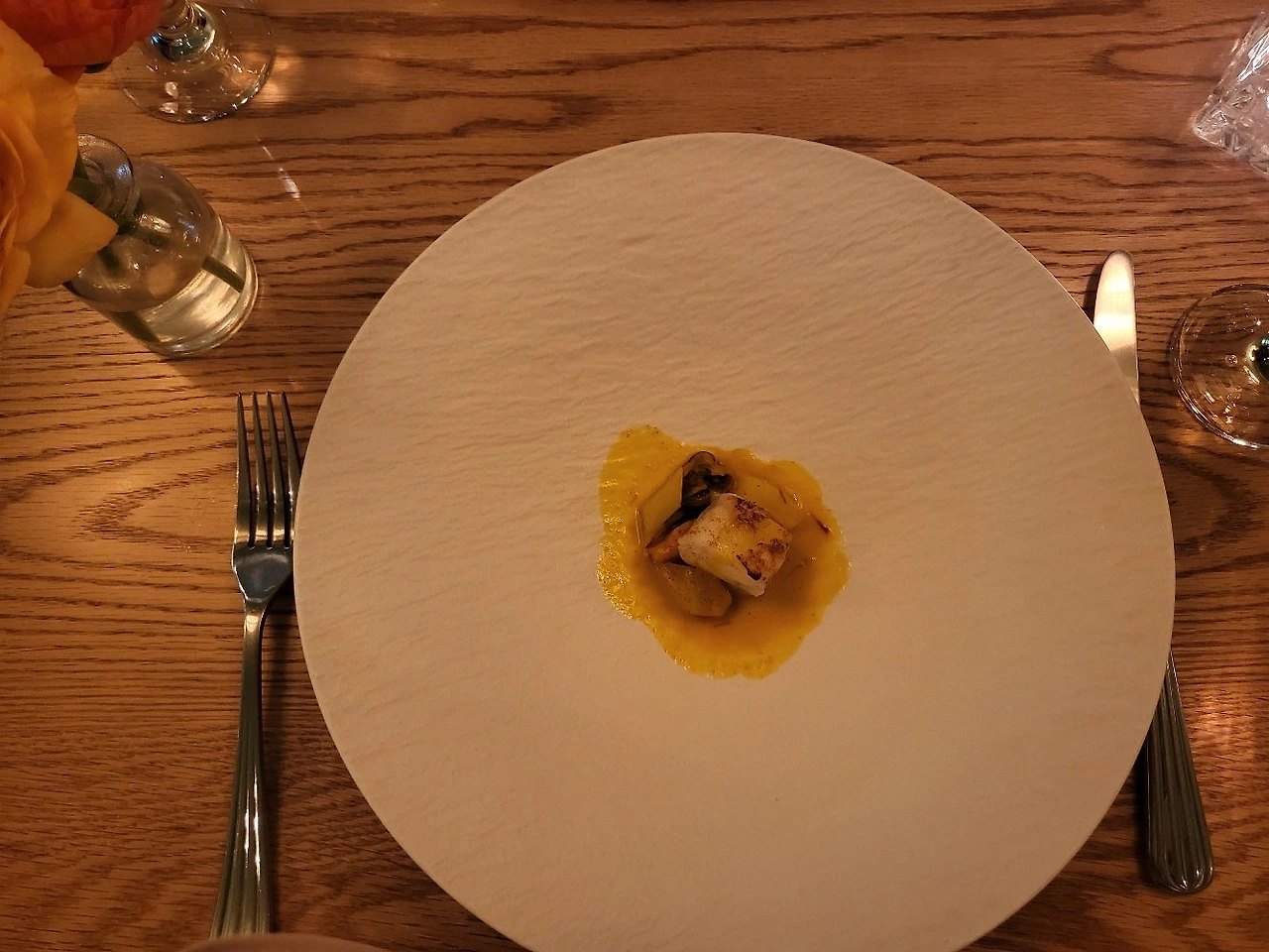 이번 해산물은 아귀요리였다. 보면 난 해산물과는 담쌓고 지냈던 사람이었다. 나는 생선 특유의 비린내와 가시가 싫어 좋아하지 않는다. 하지만 코스요리에 포함된 해산물은 전혀 다른 세계다. 그 비린내도 퍽퍽함도 하나도 없다. 부드러운 고기처럼 걸리적거리는 가시 하나없이 소스를 등에 업은 바다의 맛으로 목구멍을 통과한다.