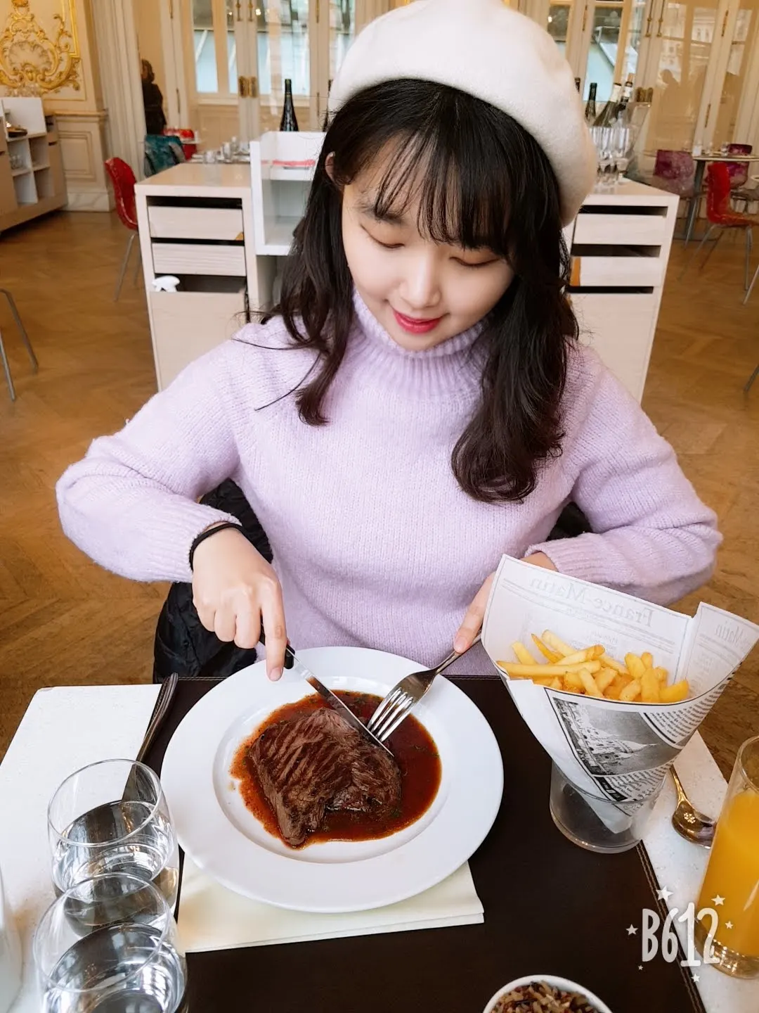 열심히 스테이크 썰어줬다. 프랑스에 가면 질리도록 고기를 먹을 수 있다.