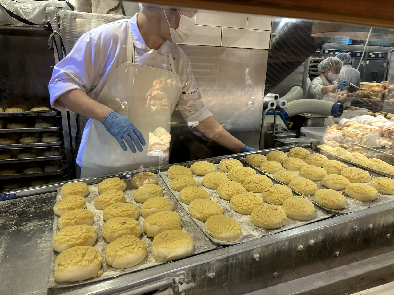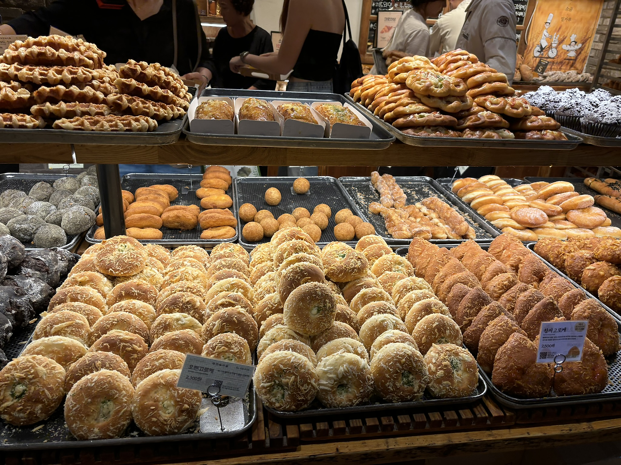빵 사려는 사람들로 북적북적했어요.