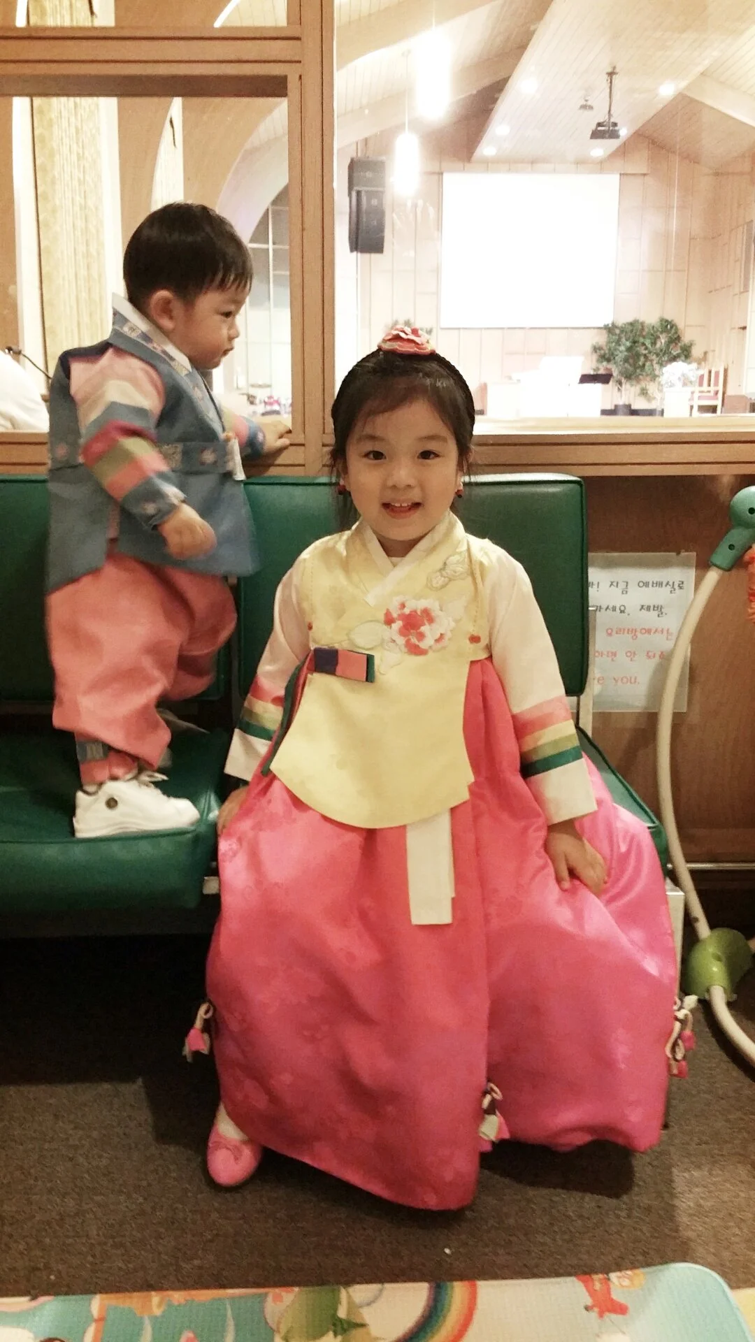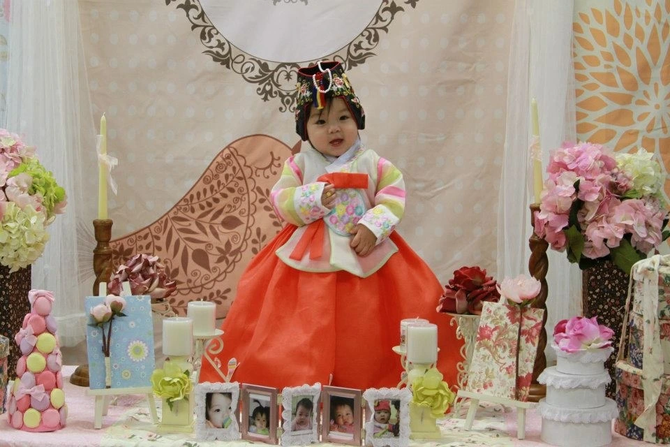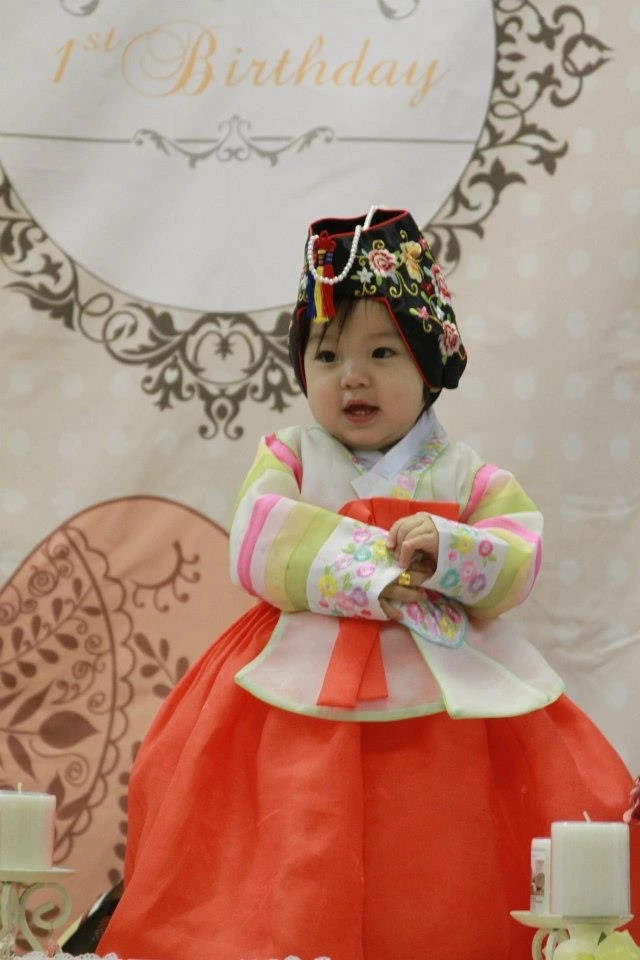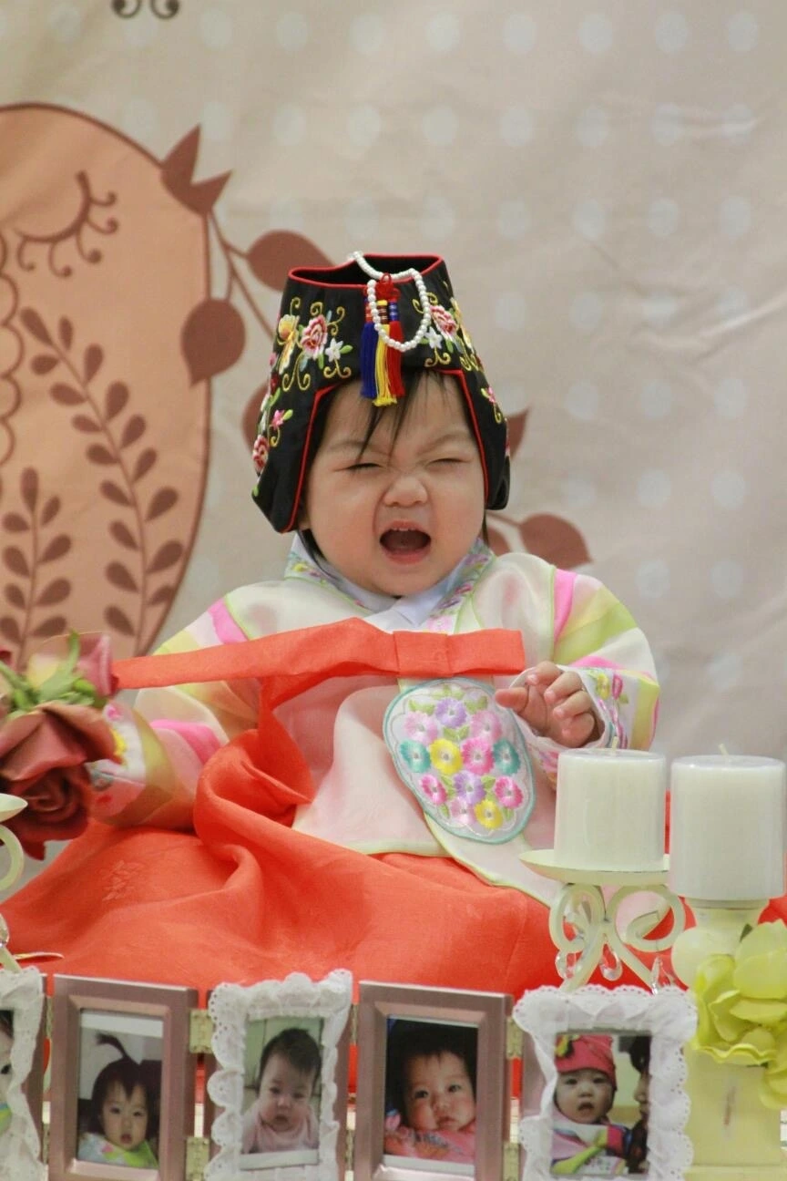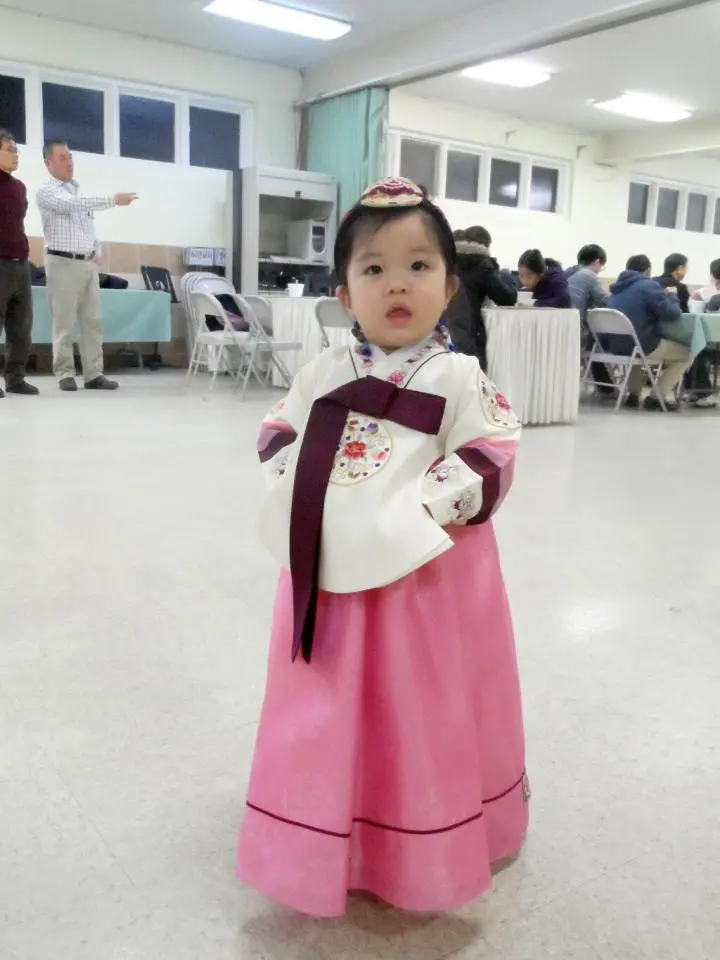 새 한복을 곱게 입고, 진주 머리띠를 단 채 말이에요.
