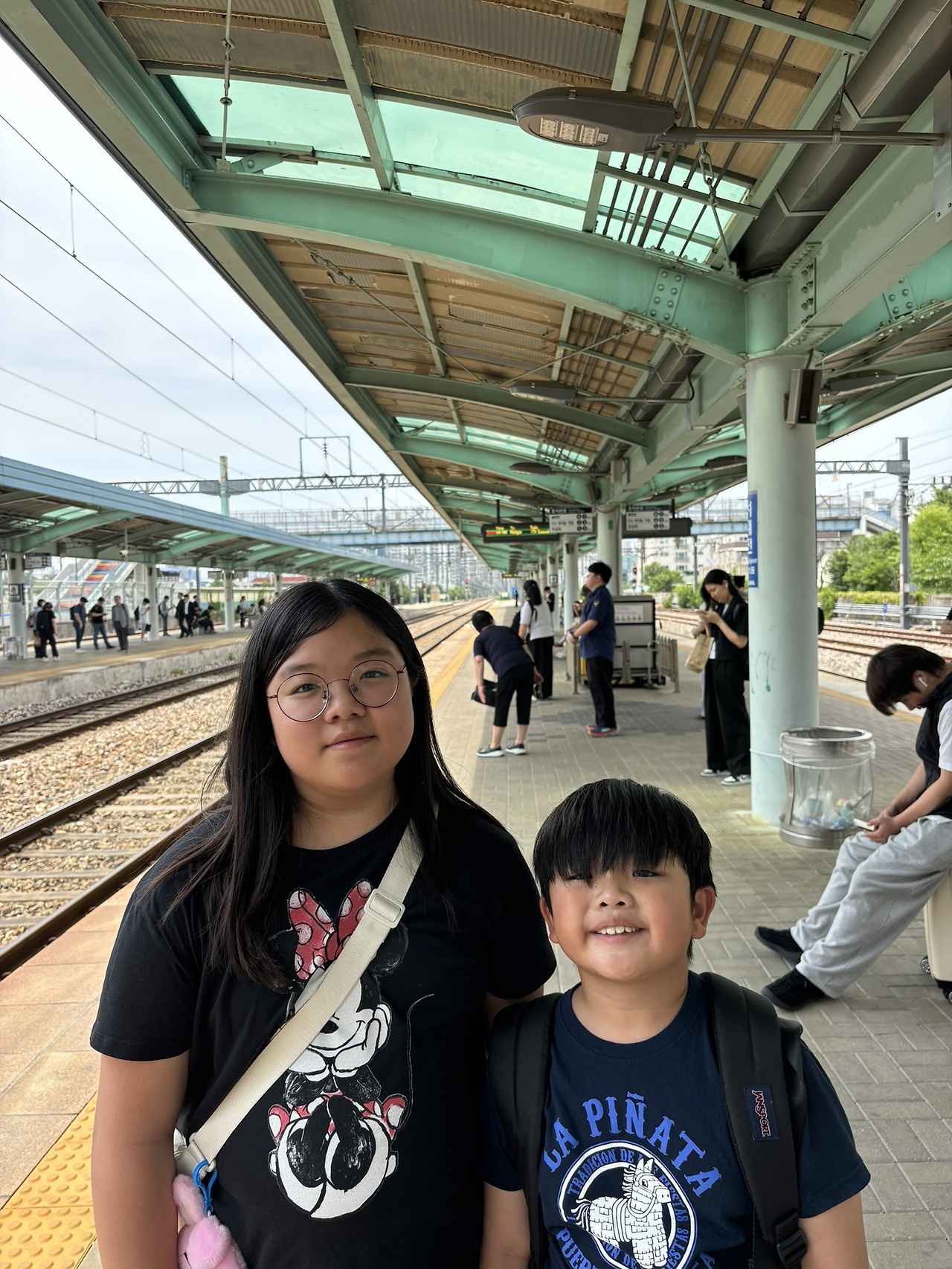 예준이도 “누나~!” 하고 소리치며 누나에게 달려가
