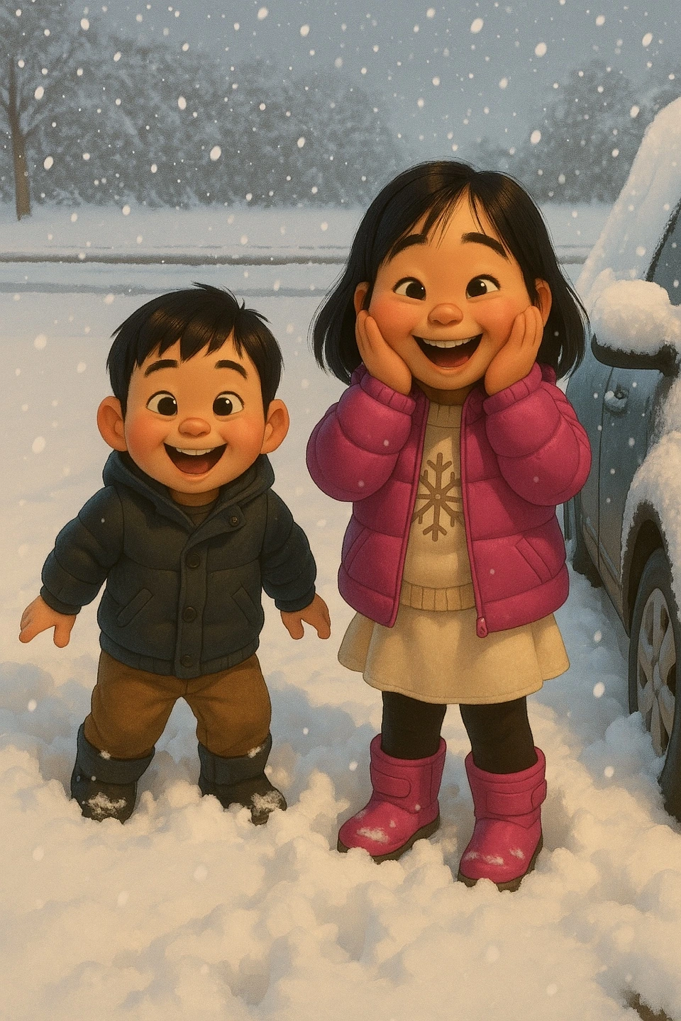 그러자 두 남매는 티격태격하며 장난을 치기 시작했답니다.
