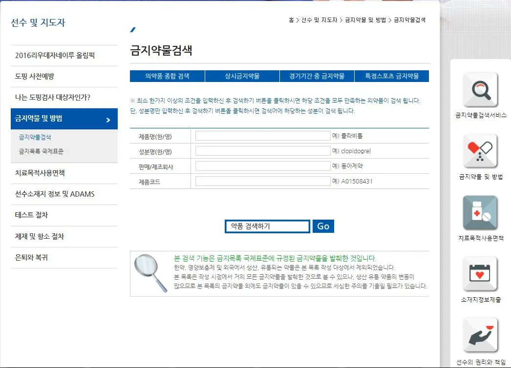 많은 선수와 지도자들은 홈페이지에 이런 기능이 있다는 것을 한 번쯤은 들어봤을 것이다. 하지만 구체적인 활용 방법을 아는 경우와 실제 활용해본 사례는 그리 많지 않을 것이라 생각된다. 현장에 몸담고 있는 대부분의 지인들 역시 필자에게 자주 건네는 질문이, "이 약 먹어도 돼요?"라는 사실만으로도 충분히 짐작해볼 수 있는 현실이다.
