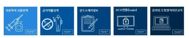 한국도핑방지위원회의 홈페이지는 이렇게 생겼다. 종종 이미지가 바뀌기는 하는데 구성은 한동안 그대로일 것 같다. 홈페이지에 접속하면 아래와 같이 파란 박스 다섯 개를 볼 수 있는데, 그중 두 번째 박스를 선택한다.