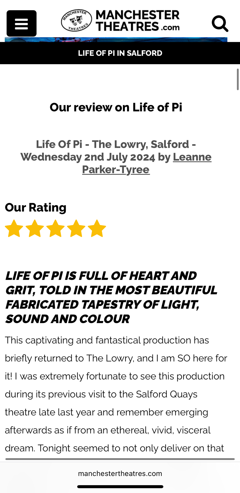 먼저, ‘라이프 오브 파이’에 대해 간단히 이야기하면 2012년에 이안감독이 만든 화려한 영상미를 자랑하는 영화가 상당한 화제였었다. 생각해 보면, 거대한 영상의 패러다임을 바꾸었던 유튜브도 존재감이 크지 않던 시절로 영화계의 블록버스터랄 것이 있던 때였다. 당시 그것이 개봉하면 꼭 봐야 할 것처럼 여겨지도록 여기저기 광고가 붙었던 것 같다. 2025년 공연 ’ 라이프 오브 파이’의 소식을 모르는 내 또래, 혹은 그 이상의 사람들에게 물어보면 모두 그 영화를 기억하고 심지어는 영어로 된 원작 소설도 집에 갖고 있는 사람들도 있었다.