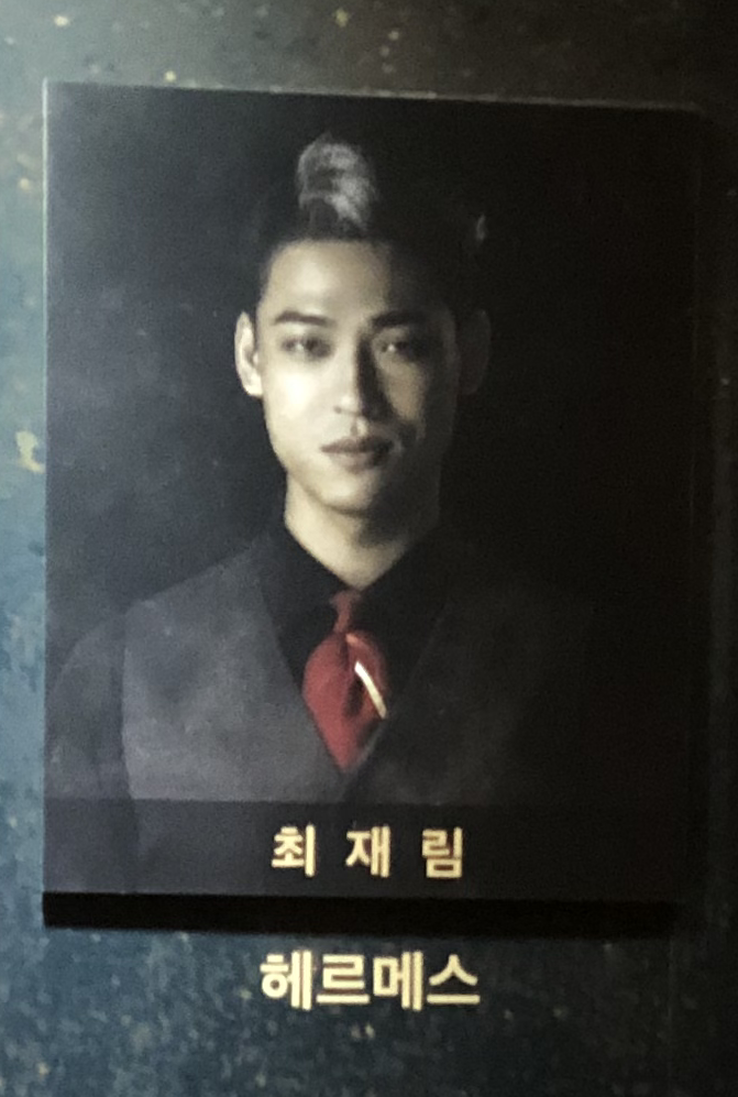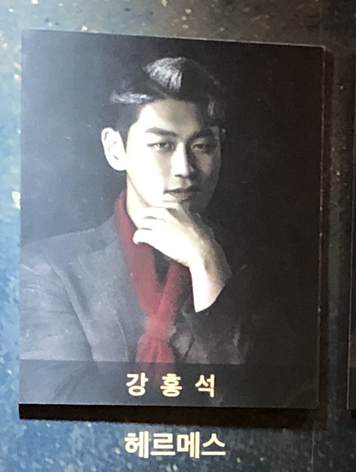 헤르메스는 하데스 타운 안에서 등장인물로 연기하기도 하지만 극을 전개시키는 변사 같은 역할도 한다. 헤르메스 역할은 강홍석, 최재림 배우가 맡았으며, 이 두 배우의 헤르메스 해석에 대한 것은 커뮤니티에 꽤나 초기부터 올라오곤 했었다. 내가 생각하는 두 배우의 강점을 꼽자면, 홍르메스는 목소리를 긁거나 하는 변주로 내는 재지(jazzy)하고 소울(soul)틱함, 재르메스는 특유의 뮤지컬 창법으로 시원시원한 전달력을 들 수 있을 것 같다.