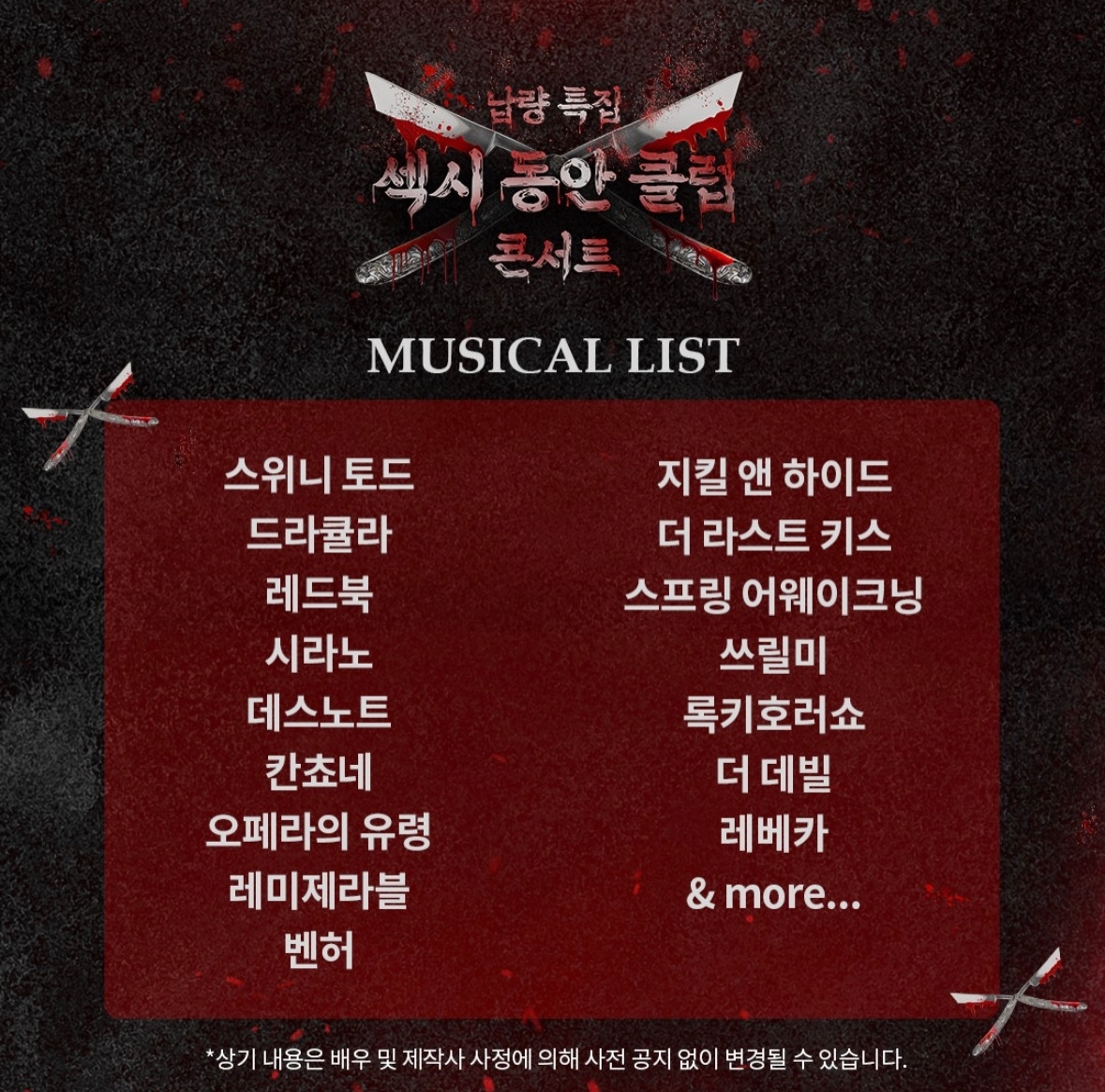 덕질배우가 게스트로 나와도, 당일에 다른 두 게스트들도 있었고… 어떤 공연일까 설렘반 두려움반이었다. 제목도 무려 납량특집이었으니까. 공연 셋리스트와 관계된 뮤지컬 리스트를 공개되고 안심했다.