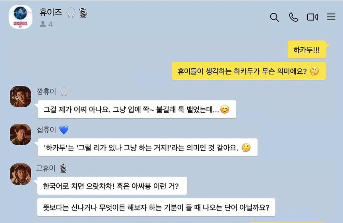 쇼노트와 충무아트센터에서 휴이를 맡은 배우들에게 하카두의 의미를 물어보기도 했습니다. 관극 전후로 각각 배우들이 어떤 의미에서 하카두를 내뱉었는지 보면 재밌을 것 같아 덧붙입니다!