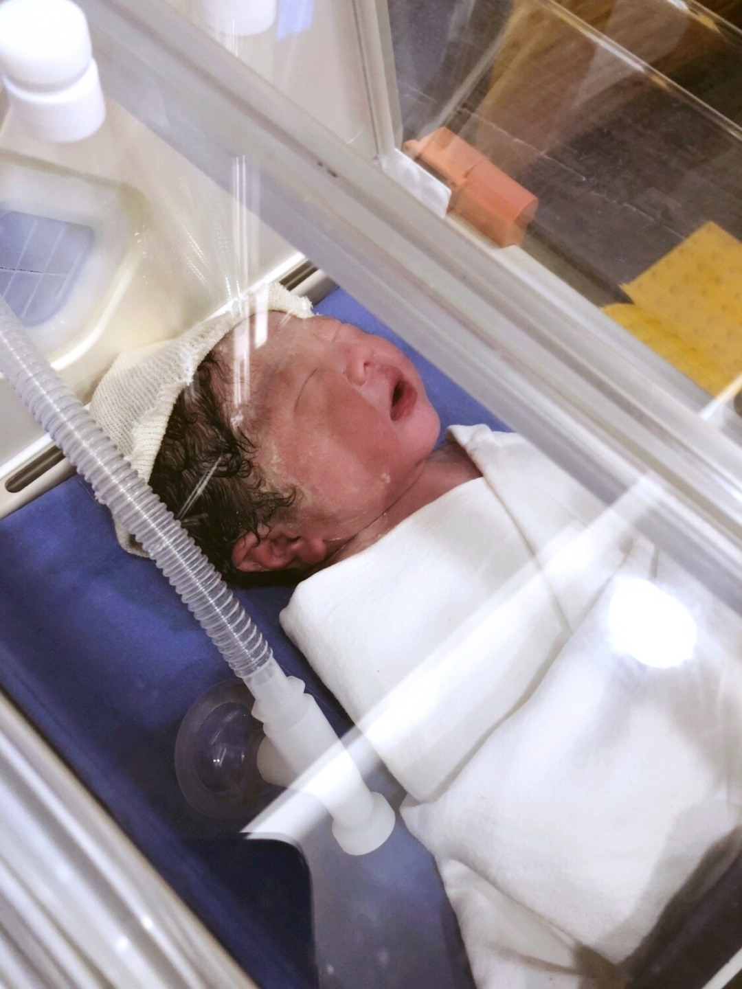 수술실에서 대기를 하고 있던 소아과 전문의 분이 아기를 확인하고 나에게 아기를 보여주러 오셨다. 오후 4시 11분에 태어난 나의 아기는 너무나도 작았다. 생각했던 것 이상으로 작아서 보고 너무 충격적이었고, 그 순간 두 눈에는 알 수 없는 눈물이 안도감과 행복감과 함께 차올랐다. 그때 감정은 정말 형용하기 어려운 감정이다. 아기는 신생아실로 옮겨지기 위해 이동을 했고, 개복한 내 배를 꿰매는 남은 시간 동안 내가 조금 잘 수 있도록 수면제를 투여해 주었으나 나의 저혈압 때문 정량을 주사하지 못해 나는 잠에 들지 못하고 내 배가 꿰매지는 모든 소리를 라이브로 들어야 했다.