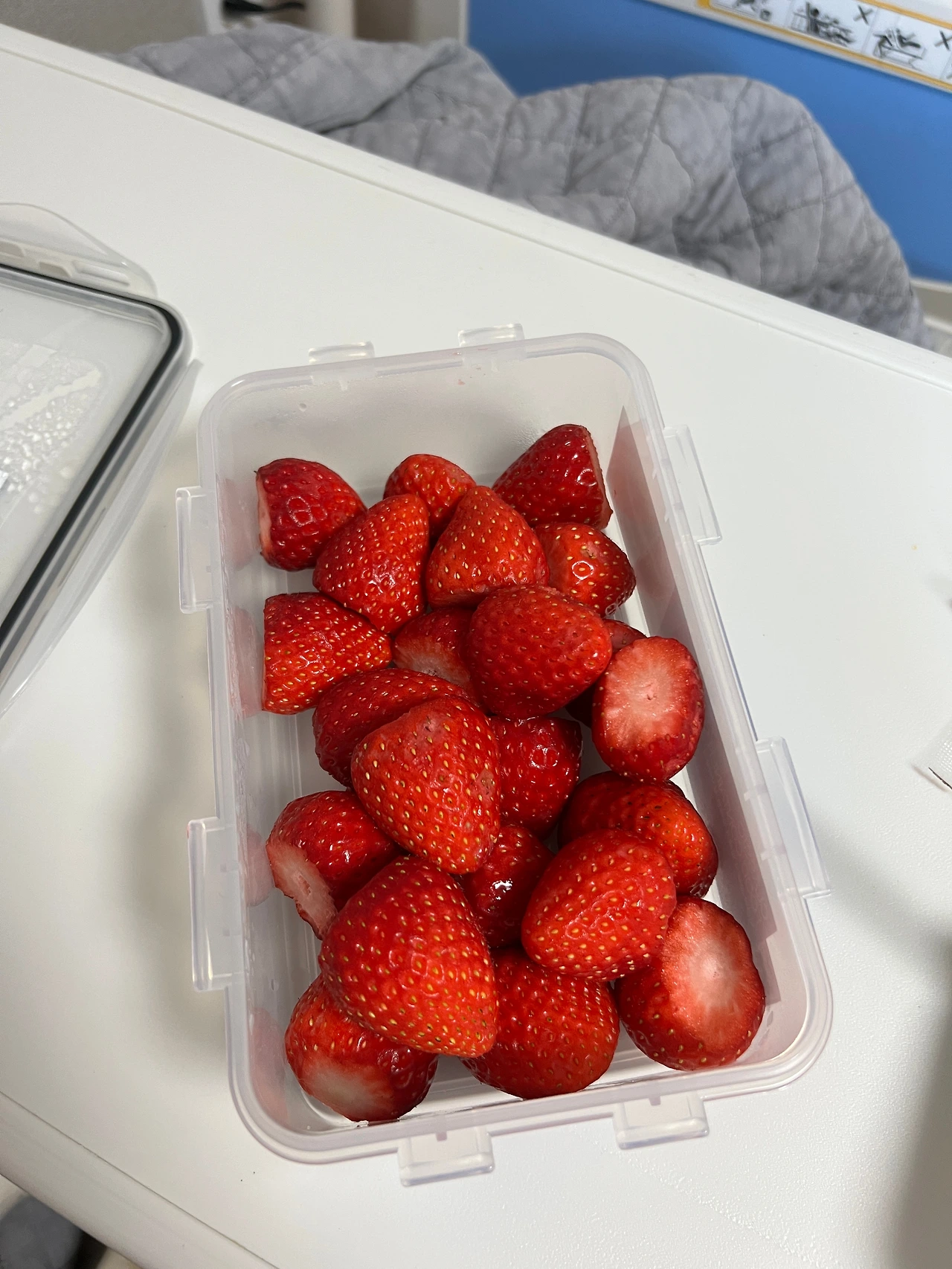 원래도 자궁경부길이가 짧아서 계속 재택을 했던 나는 4월 1일 토요일 회사에 가서 남은 짐을 싸고 남편과 나오는 길에 화장실을 잠깐 들렸다. 화장실에서 볼일을 보고 약간의 혈흔이 섞인 분비물을 마주하여 분만실에 전화를 하니 내가 그 전날 처방 받았던 자궁경부용 질정 (유트로게스탄질정) 때문일 수 있으니 추이를 보고 알려달라고 해서 또 출혈이 있나 지켜봤는데 별다른 출혈은 없었다. 다만 1일 밤부터 시작된 허리 통증이 2일에는 더 심해졌고, 나의 눕눕생활로 넉달간 뵈지 못했던 시부모님께 다시 한번 찾아뵈지 못하겠다는 전화를 드렸다. 시댁에는 남편 혼자 찾아뵙고 시어머니는 늘 그래오셨듯 아이스박스 두개 가득 내가 먹을 음식 (특히나 내가 아보카도와 딸기를 좋아해서, 여러 반찬과 김치 뿐만 아니라 엄청 큰 한우와 아보카도, 딸기도 함께 보내주셨다)을 보내주셨다. 죄송하고 감사할 뿐이다.