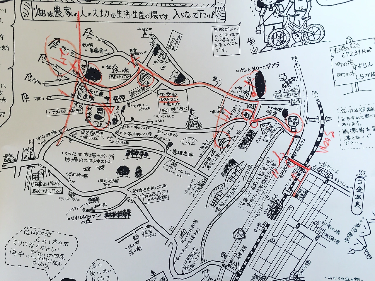 정신을 차리고 멈춰서서 구글 맵을 켜보니, 자전거 대여점 할아버지께서 빨간 선으로 표시해주신 원래 노선에서 벗어나삐딱하게 아사히카와로 향하고 있었다.